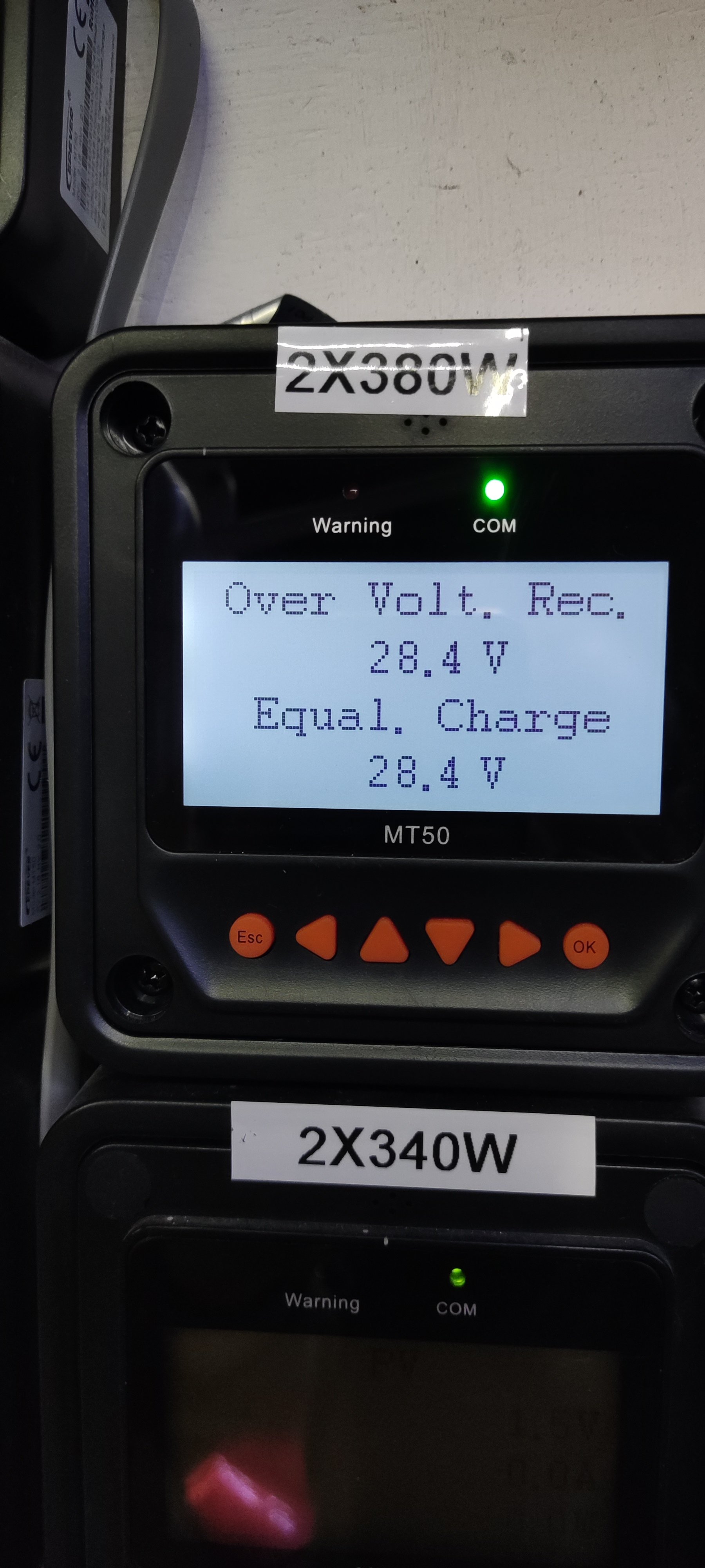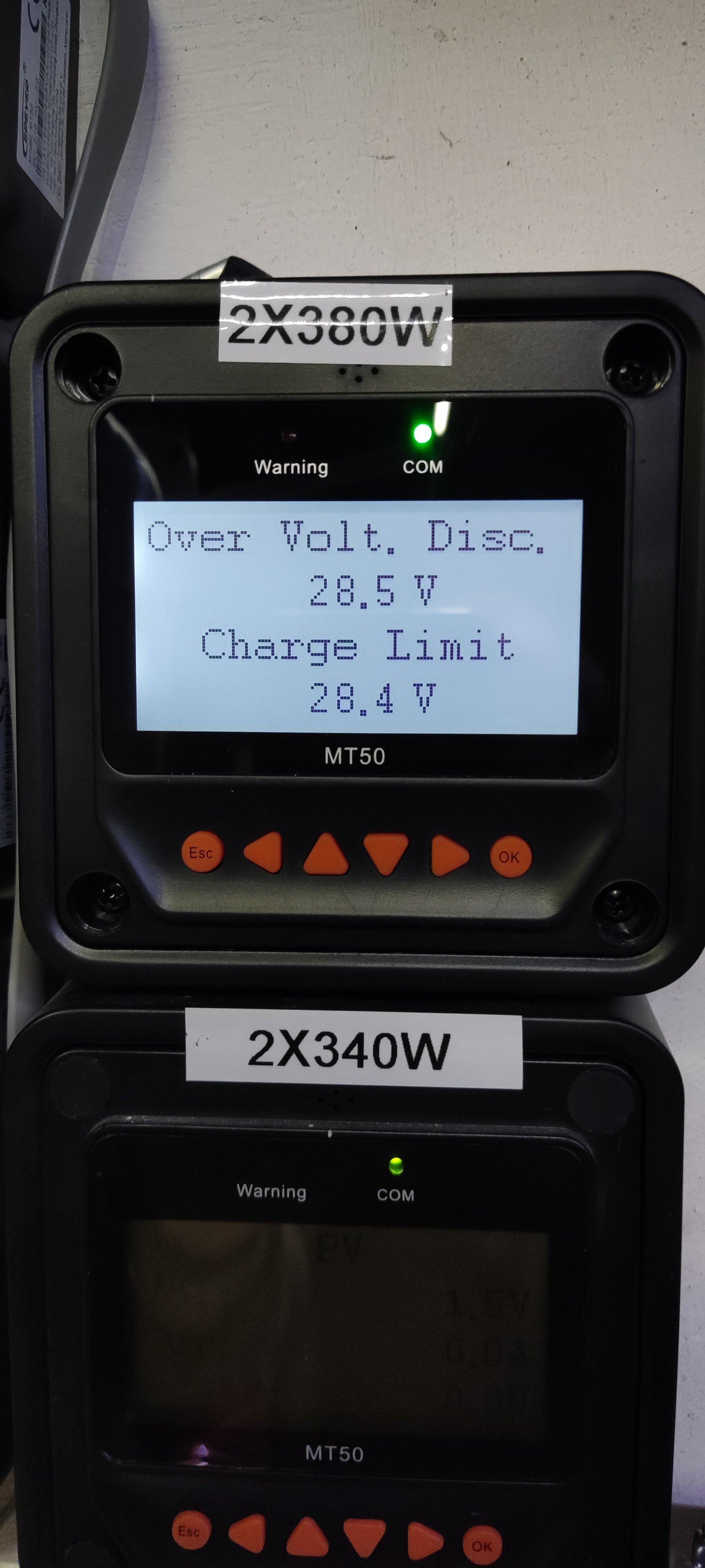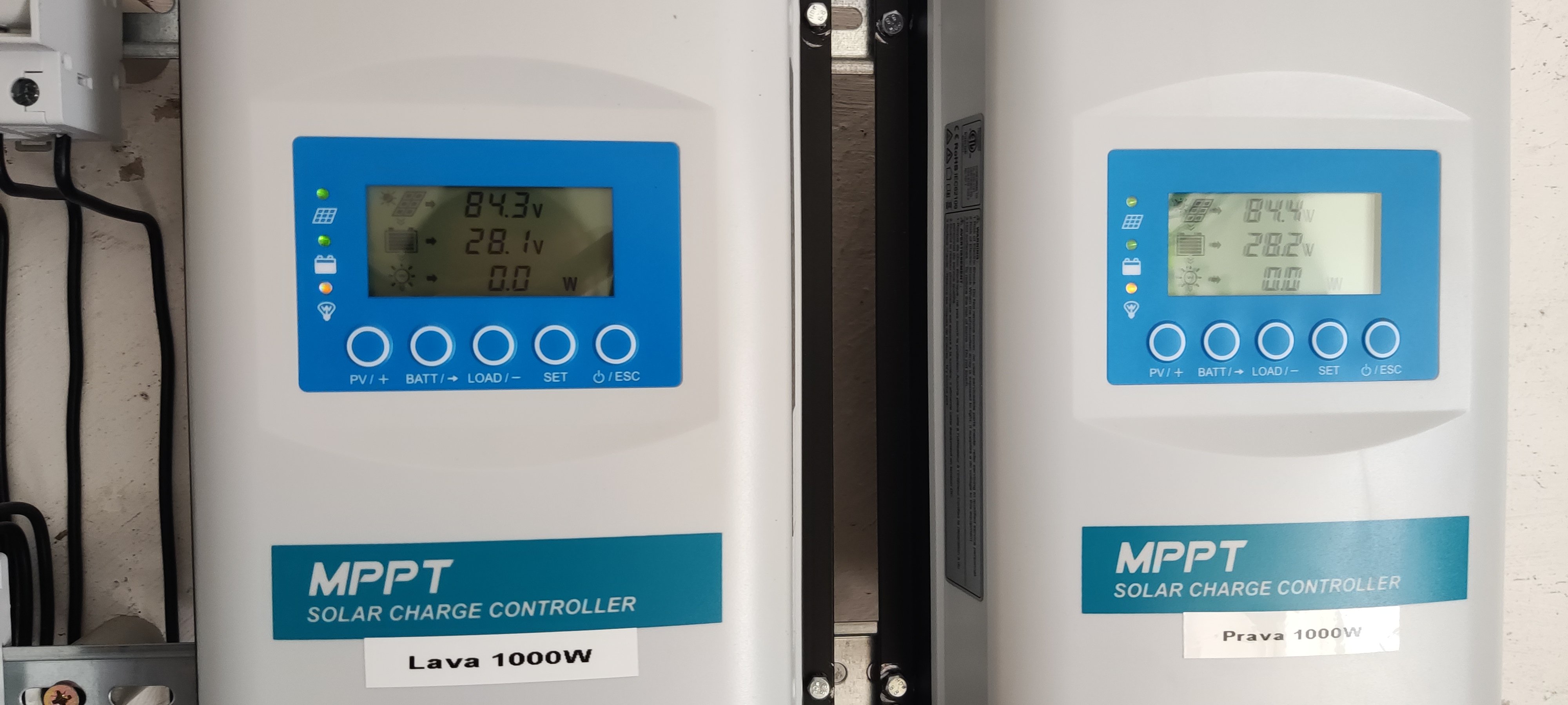 A teraz môj problém, regulátory akoby nevedeli nájsť optimálny bod..napätie z panelov okolo 85V, slnka ako na Sahare a výkon par wattov. Ked odpojim panely a znova ich pripojim výkon pekne nárastie na stovky wattov o minútu je však nazad na pár wattoch. Max napätie batérie je nastavene na 28.4V. Panely neprekračuju ani max napätie ani prúd, a ani napätie batérie nie je ešte na 28.4V. Výkon je aj tak pád watov. Nechápem kde je problém. Vie dakto poradit?
