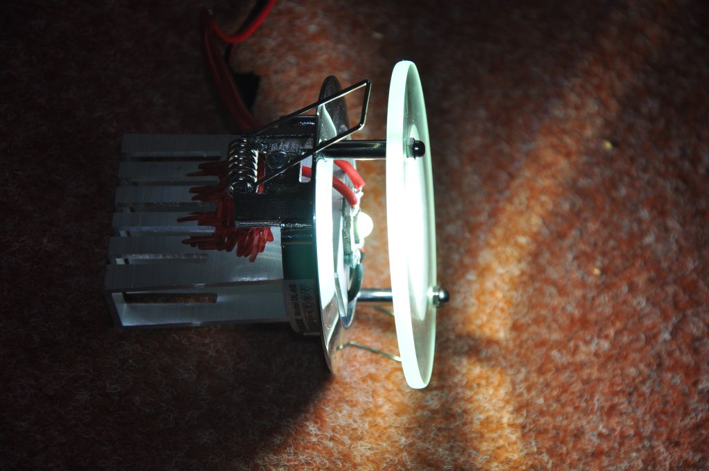 Na fotce je pár modulů, 7 ledek má při proudu 1A asi 25W. Výkonové ledky potřebují chladič! Ten mám u všech svítidel ve stropě nad sádrokartonem, svítí pak "díra ve stropě" buď bodovka, nebo ploché stropní svítidlo.
