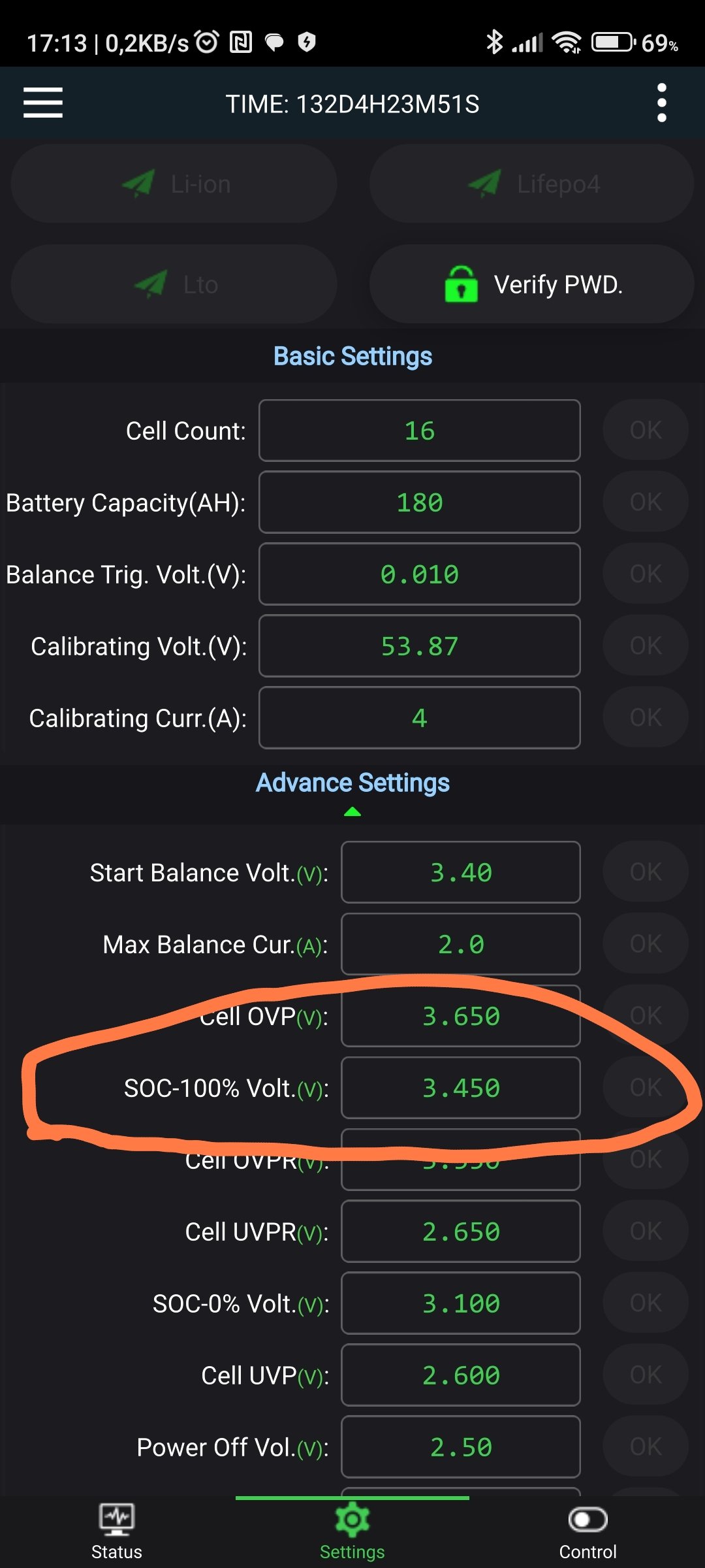 Asi musím mít starší verzi bms tuto volbu tam vůbec nemám.Soban píše: pát čer 14, 2024 4:10 pmDatashet pohledej na internetu, snad víš co jsi kupoval.....Hipak píše: pát čer 14, 2024 3:52 pmDatasheet od Čínana asi nedostanu co jsem koukal tak články již dále neprodává. Zkusil jsem nastavit těch 3,5V na článek a to napětí 3,5V bylo asi do minuty na baterce a zase ukončeno nabíjení. Jen mi nejde do hlavy, že v té absorpční fázi již žádný proud do baterky nejde a defakto skočí rovnou na float.