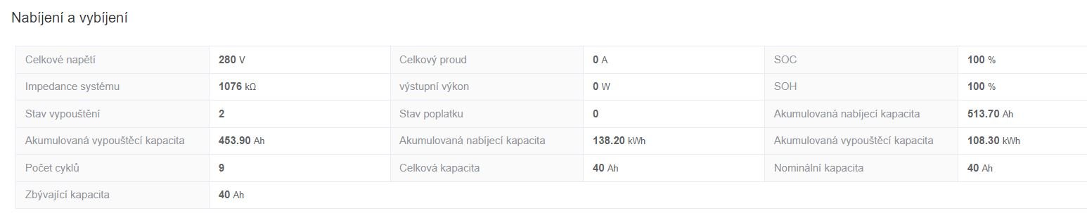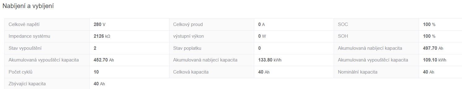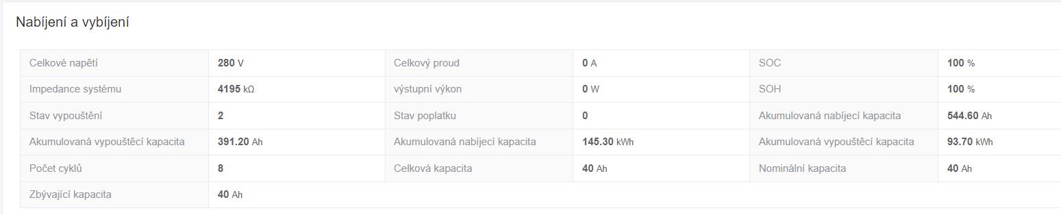 V těch statistikách jsou vidět jen součty celé výroby za těch +-10 cyklů, není tam ale aktuální kapacita baterky, ze které by se pak dala odvodit závislost na tom odporu/indukci, jestli je nějaká nabitá víc nebo míň. Podívej se, co to bude ukazovat při vybití pod 100 SOC. Je zajímavé, že se liší i počty cyklů.