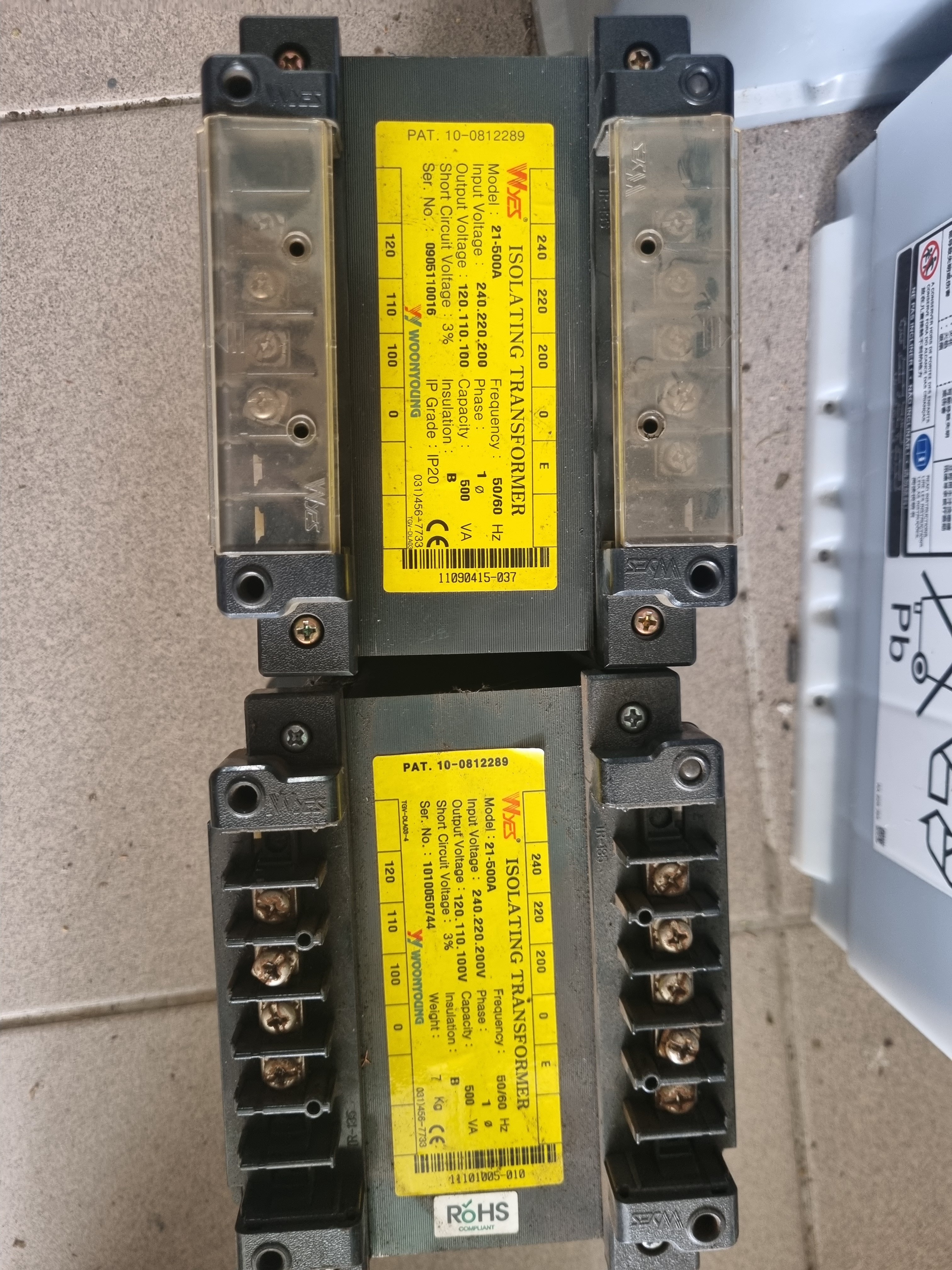 Prodám 2 ks masivních profesionálních transformátorů 500VA váha 1 ks je 7kg.Cena za 1ks 500kč/+poštovné.Spojením obou do serie je možné získat 400V/1000VA