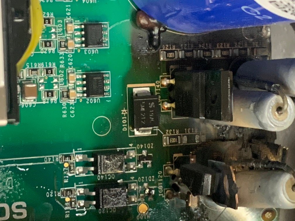 To kodl69: To si viem prečítať aj ja, ale nič o type tých IGBT to nehovorí. Tá SMD SOT23 je značený ako ZD120 a ZD140,čiže zenerky. Tá ZD120 vyzerá byť odlomený. IGBT je pravdepodobne NDFPD1N150C, čiže 1500V 0,1A odpor v zopnutom stave 100ohm.