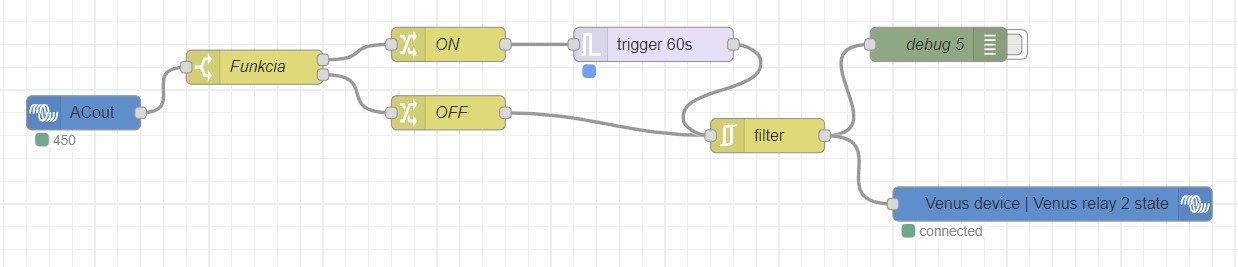 Uživatelé diskutují o využití NodeRed pro ovládání výstupu ACout2 na zařízeních Victron podle stavu nabití baterie (SOC). Řeší, jak vynutit pravidelné odesílání stavu bez zbytečného zatěžování systému a zabránit nežádoucímu cyklování relé při různých odběrech, například čerpadla ve studni. Sdílejí zkušenosti s nastavením podmínek a hardwarovými řešeními pro stabilní provoz v solárních instalacích.