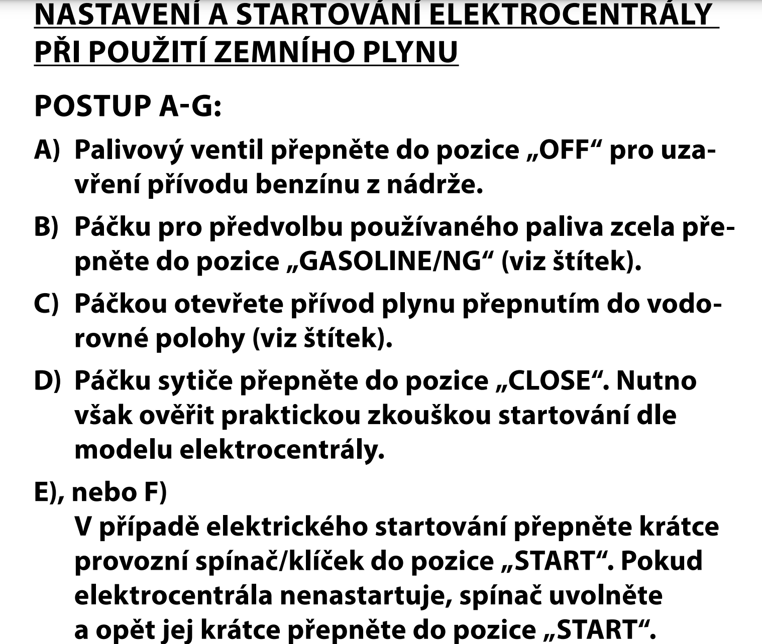 Taky nechápu jak se může startovat na plyn, když v návodě je napsáno napřed na benzin a potom (zahřátí motoru na benzin) se přepne podle typu plynu na plyn.