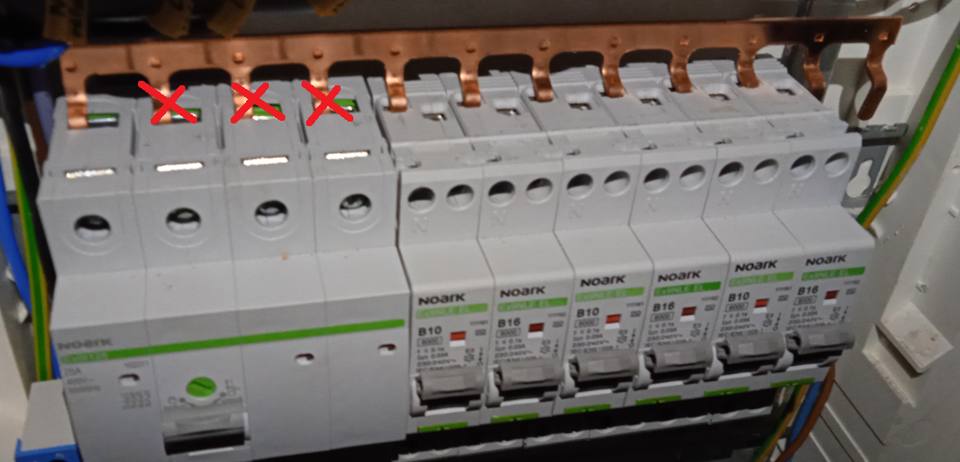Taky mám 2 skupiny chráničů, každá pro 1f, propojeno dvěma proti sobě otočenýma 1f lištama.