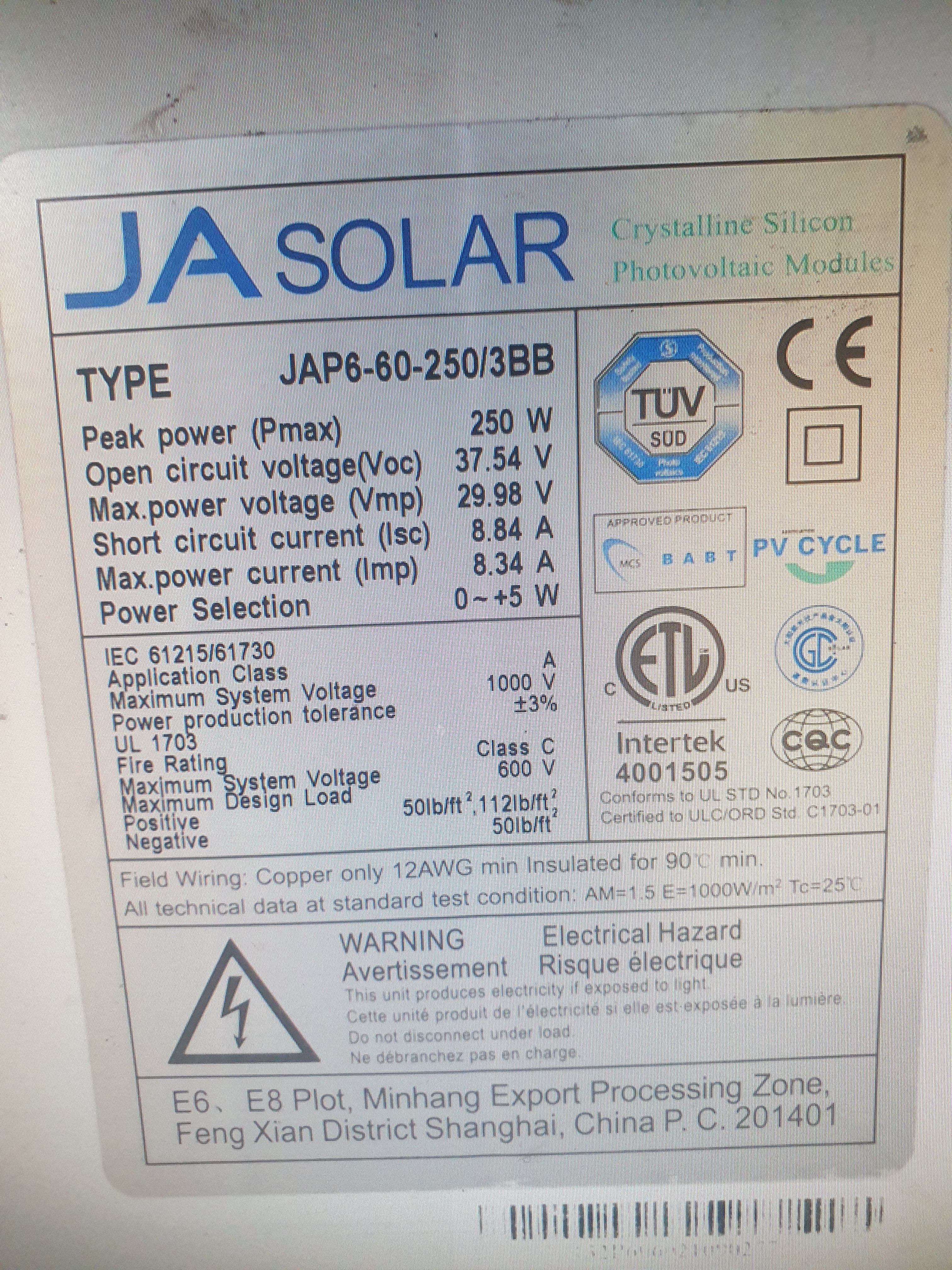 JA solar 250 Wp