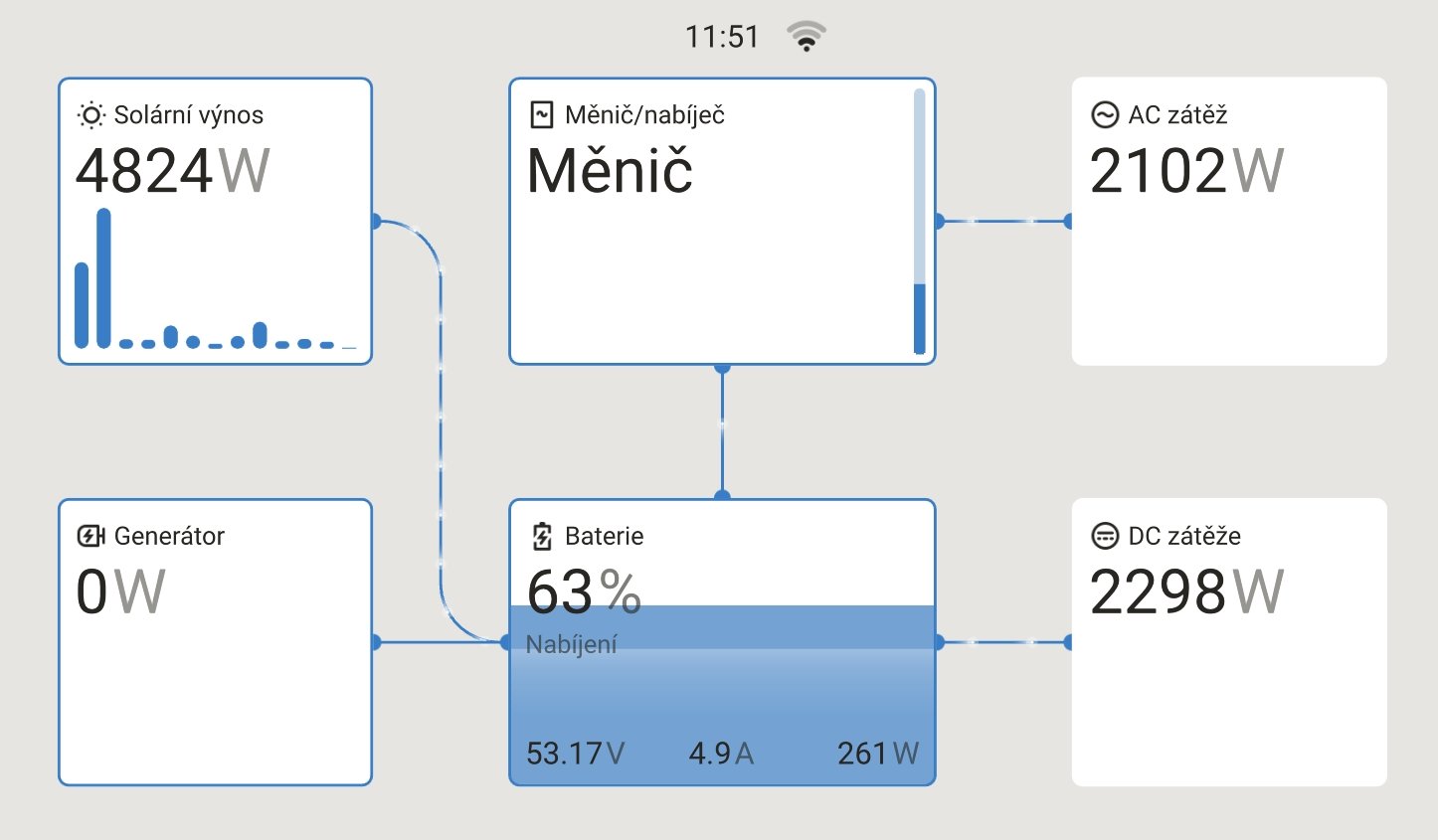 Když budeš mít víc panelů, budeš trpět jako já teď. Od rána jsem vyrobil cca 50kWh a všechno plný. Už to zůstává na střeše a to je únor
