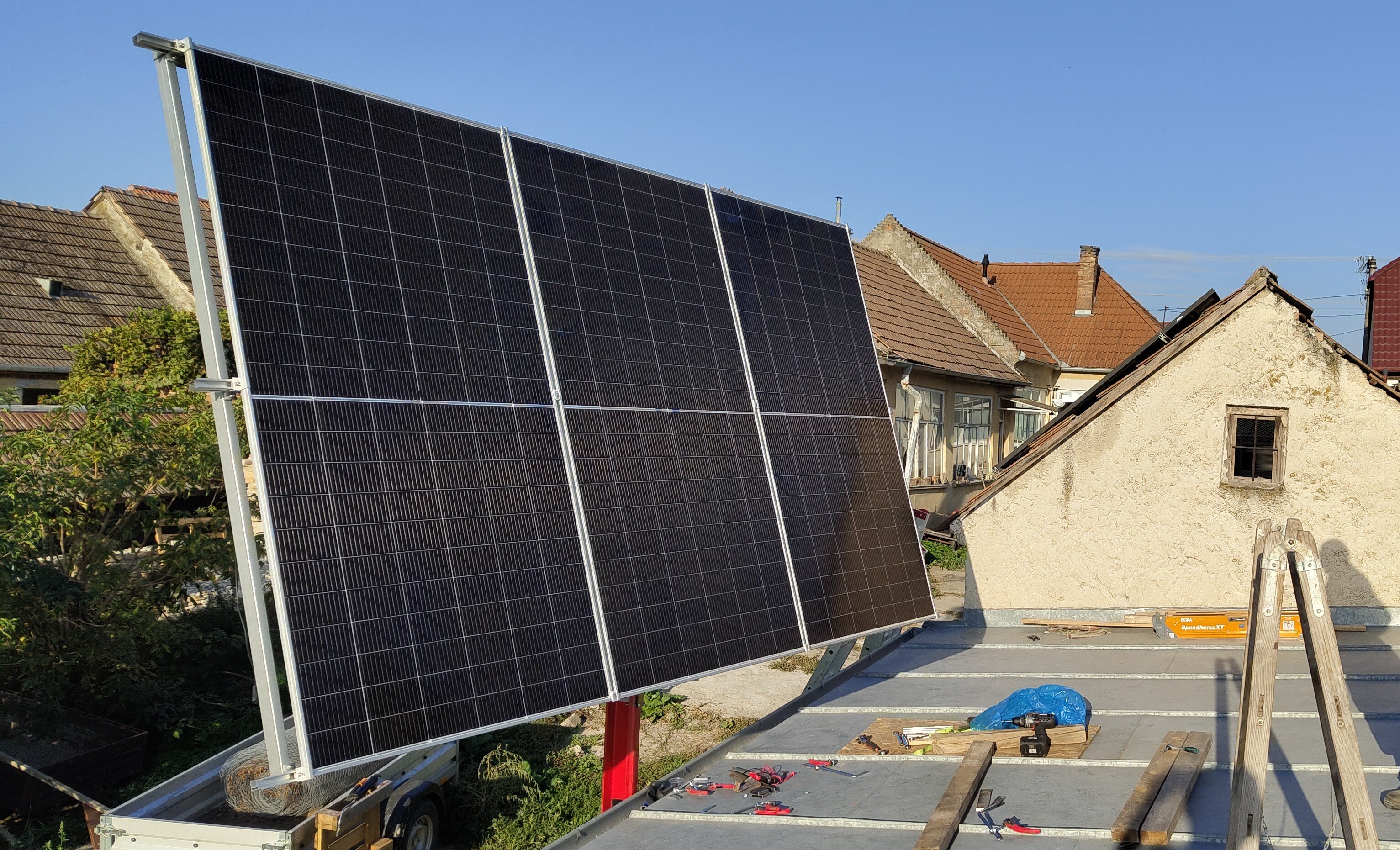 Mě některý dni vychází nejlíp panely na svislo, hlavně na nich nedrží sníh... Zkoušel jsem nasimulovat 2ks panelů na střeše východ/ západ, oproti těm stejnejm svisle, čistej jih. Ku podivu to v zimě vychází mnohem líp, a když je slunka dost, tak je to jedno...