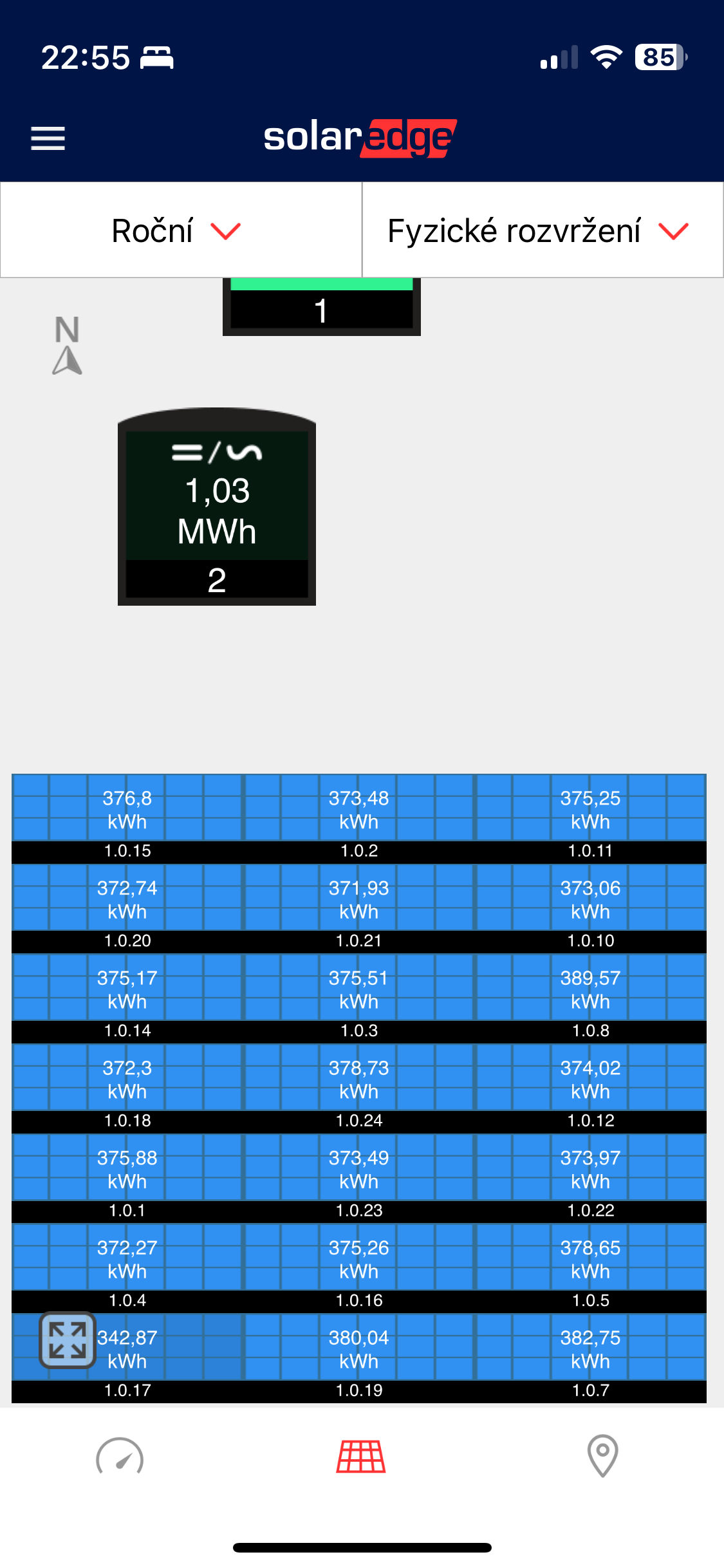 Rozhodně to ničemu nevadí. Bifacial by neměl trpět delaminaci back sheetu, protože jej tvoří sklo, které nehoří a to je taky výhoda. Tady na scr jsou 390Wp panely a spodní řada je mírně vysunuta do prostoru. 1.0.19 a1.0.7. (1.0.17 trpí denně stínem ), kde je vidět, že nějaký příspěvek zadní strana přináší.