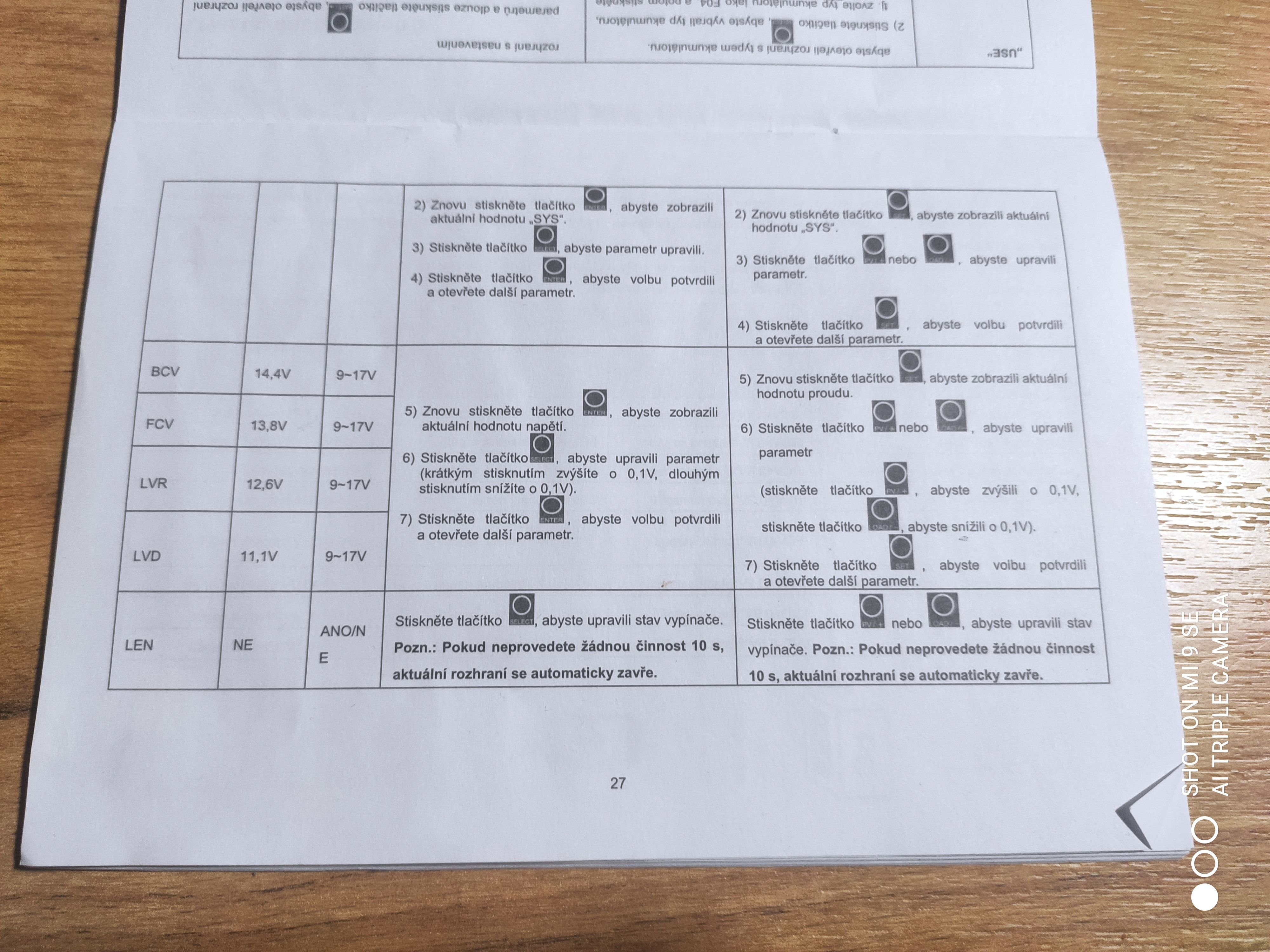 Měl bych dotaz k nastavení MPPT XTRA4415N-XDS2 pomoci panelu. Asi možná stupidní dotaz, ale nějak nejsem schopen uložit změnu nastavení napětí baterie BCV/FCV/LVR/LVD v modu baterie USE. Ostatní nastavení se mi normálně po změně uloží.