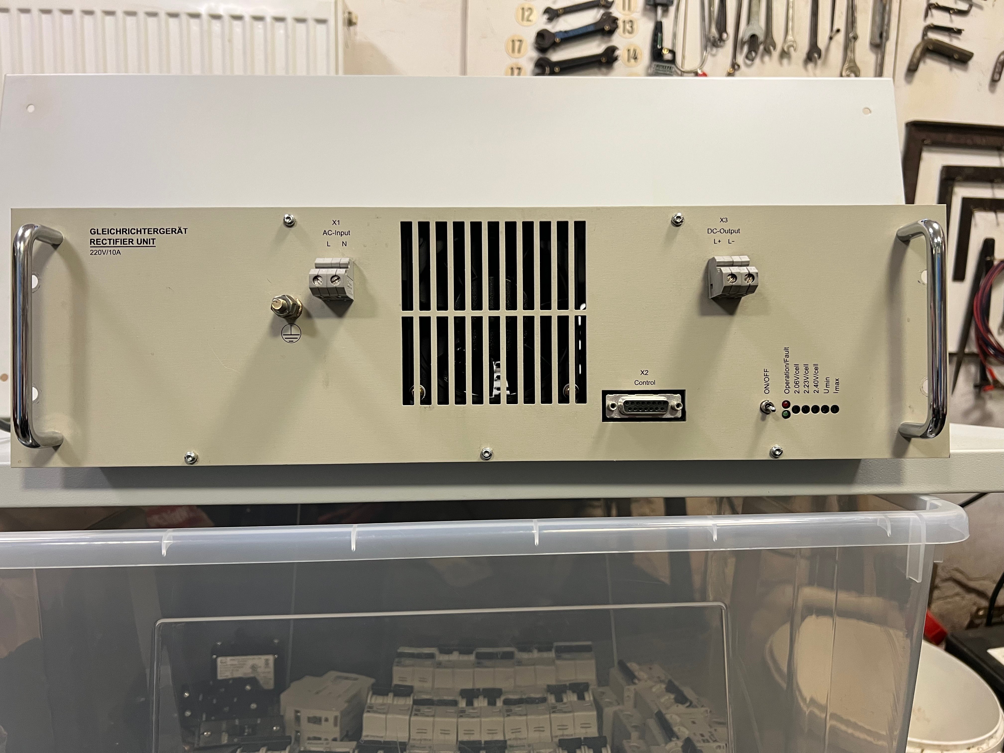 Nabízím k prodeji modulový zdroj ( usměrňovač ). Vstup 230VAC, výstup nastavitelný 175-270V, možnost nastavit proudové omezení 10A, charakteristika IU. Rozměry 19" jednotka 132,5 x 482,6 x 290 mm. Zdroj po repasi. Pokud bude zájem pošlu návod v pdf.