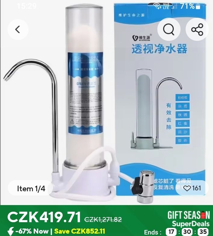 Voda z filtru je chuťově výborná. Údržba minimální. Filtr stačí několikrát do roka omýt kartáčkem případně smirkem. Dají se koupit i větší filtrační jednotky. Od ty doby jsem nekoupil balenou vodu.