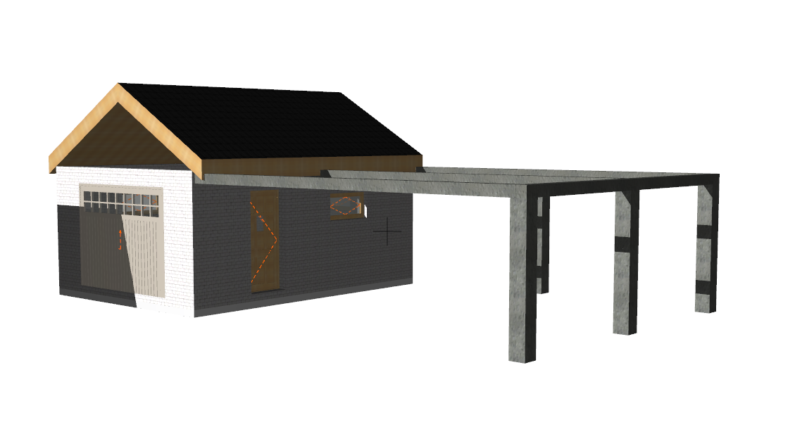 Jen pro info - ještě jsem uvažoval o této variantě zastřešení - sklad zastřešen pořádně, stání na auto by bylo jen FVE panely. Střecha by takto byla orientována přesně na jih, ale jen pro cca 6 panelů/3,3kwp, zbylé (18/10kwp) by byli na ležato (tak max.5°)...což prý není optimální...špinění...