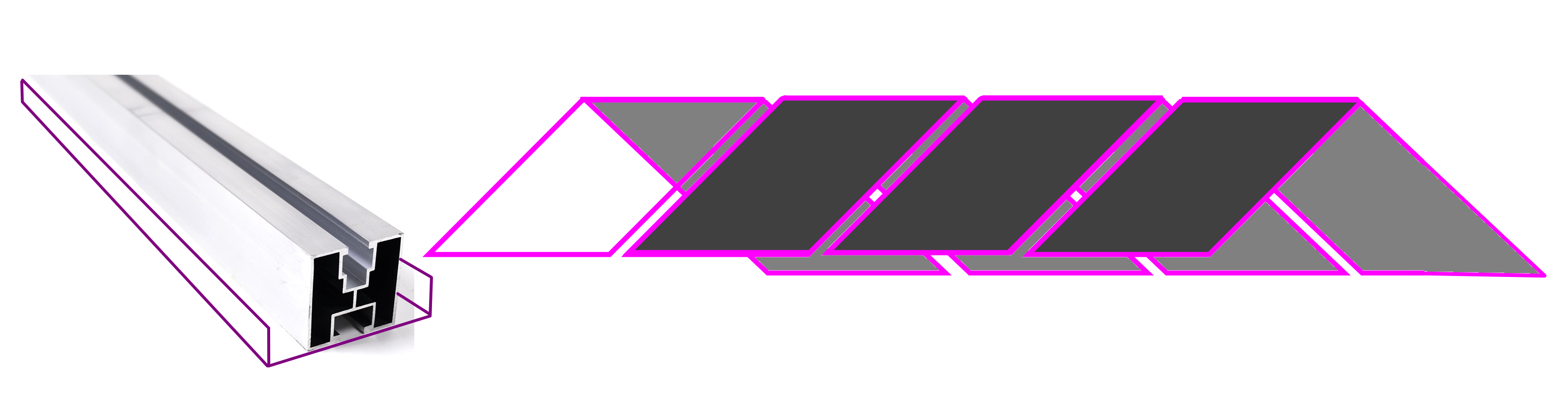 Celoplošně mít delší stranu panelu - celou na profilu je hodně pevný prvek - když panel obvykle drží na 4 bodech na pár centimetrech čtverečných a profil sešroubovaný jako vazníková střecha do trojúhelníku - je velmi pevný a stabilní.