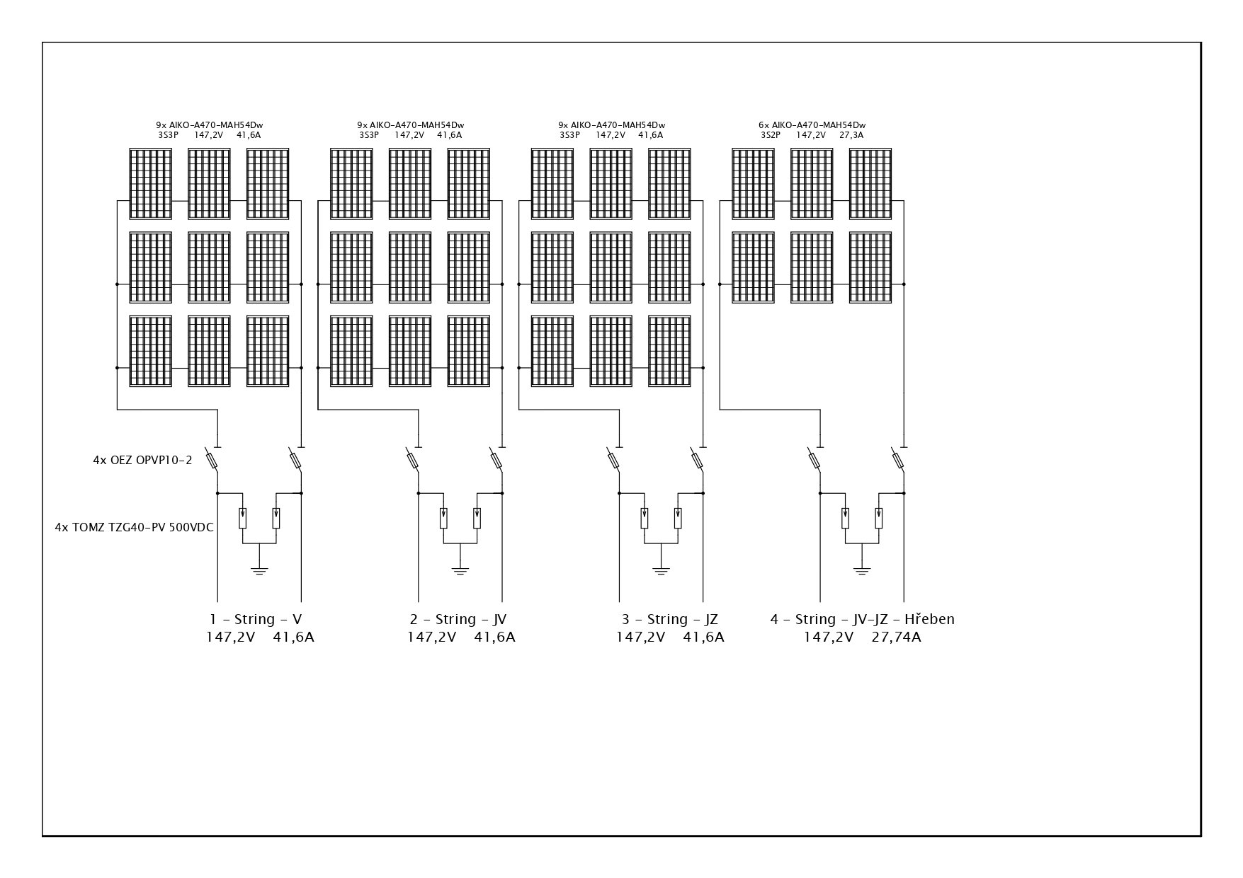 Ak by si troška upravil polia, stačili by ti 3ks mppt - V, JZ, JV. ušetril by si jeden regulátor a 1ks prepäťovka. Takže by si mal 3S3P + 2x 3S4P.
