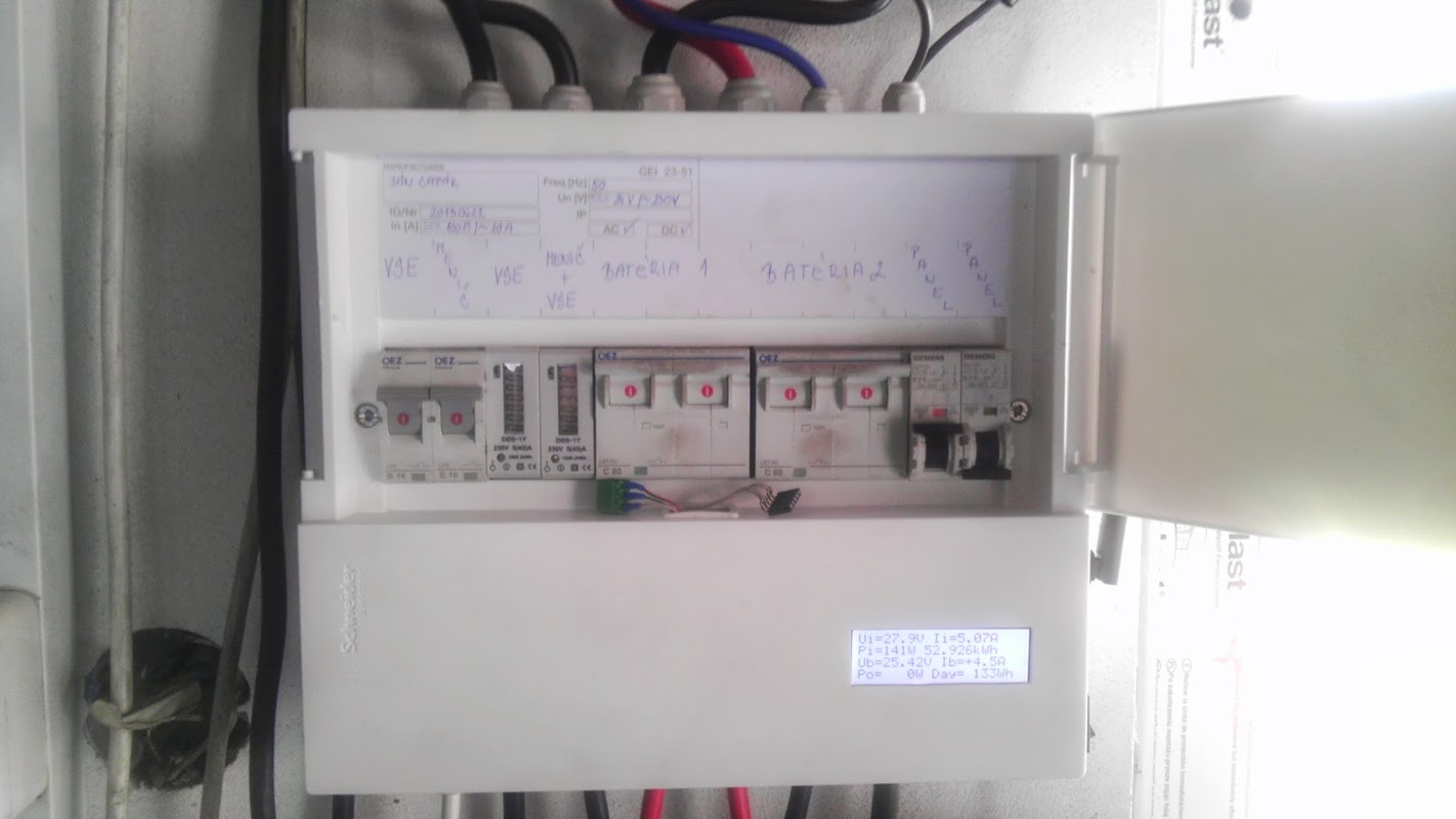 Takze vyrobil som si 100Wp panel ktory som mal na testovacie ucely 2 roky, k tomu samozrejme uz kupeny 350W trapezovy menic a solarny regulator Phocos CX20. Samozrejme nebolo to bohvie co, ale ucel to kazdopadne splnilo