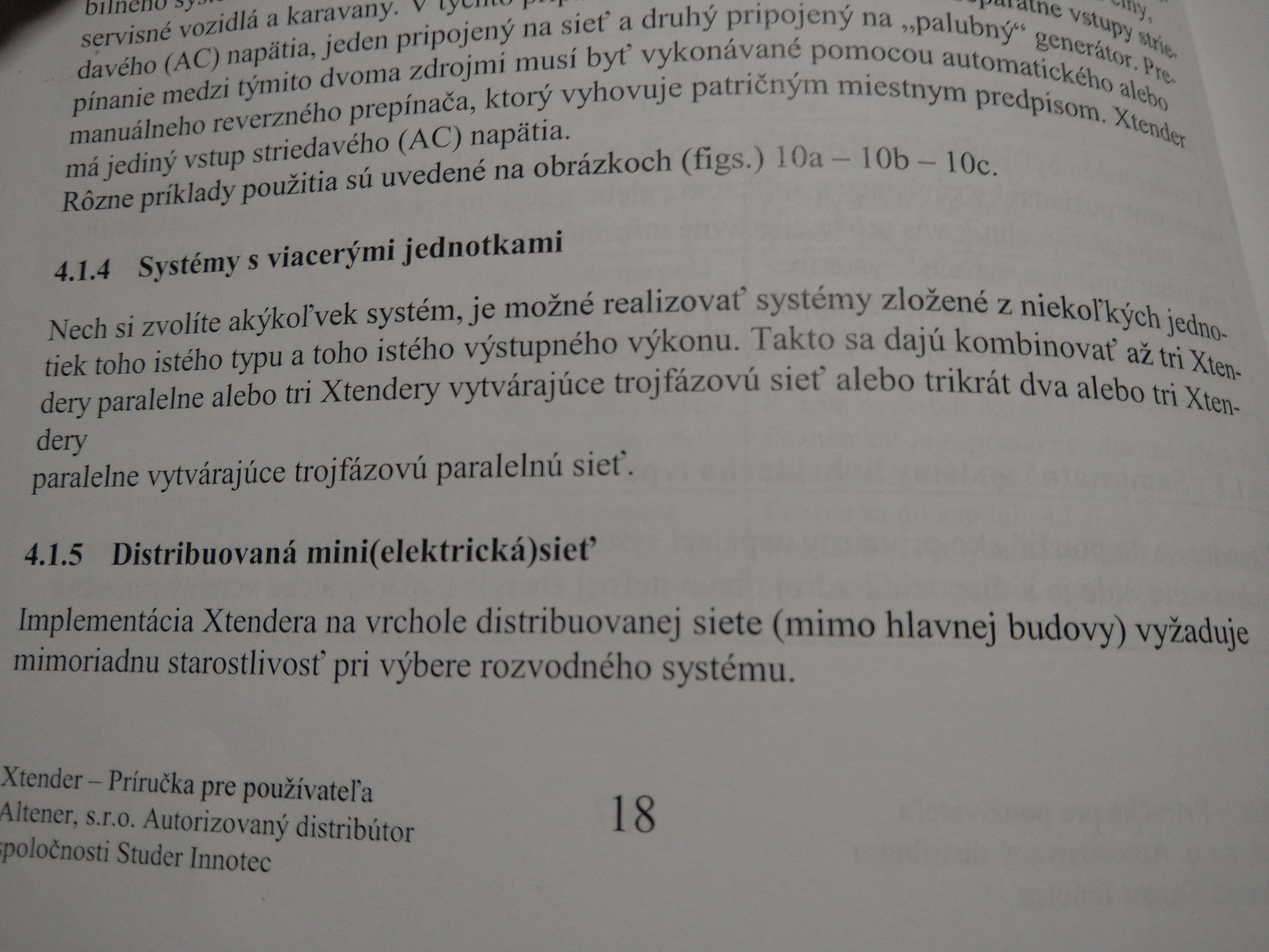 V mojom prípade som chcel zosilniť ešte 3x XTH 8000 (paralelne) s dalším neznačkovým meničom (cca 10-12kw) na vstup,ale nakoniec som tam dal dalšie XTH (dostal som ako darček/odškodné) ale nie je to potrebné,všetko postíhajú tie tri meniče paralelne v pohode.