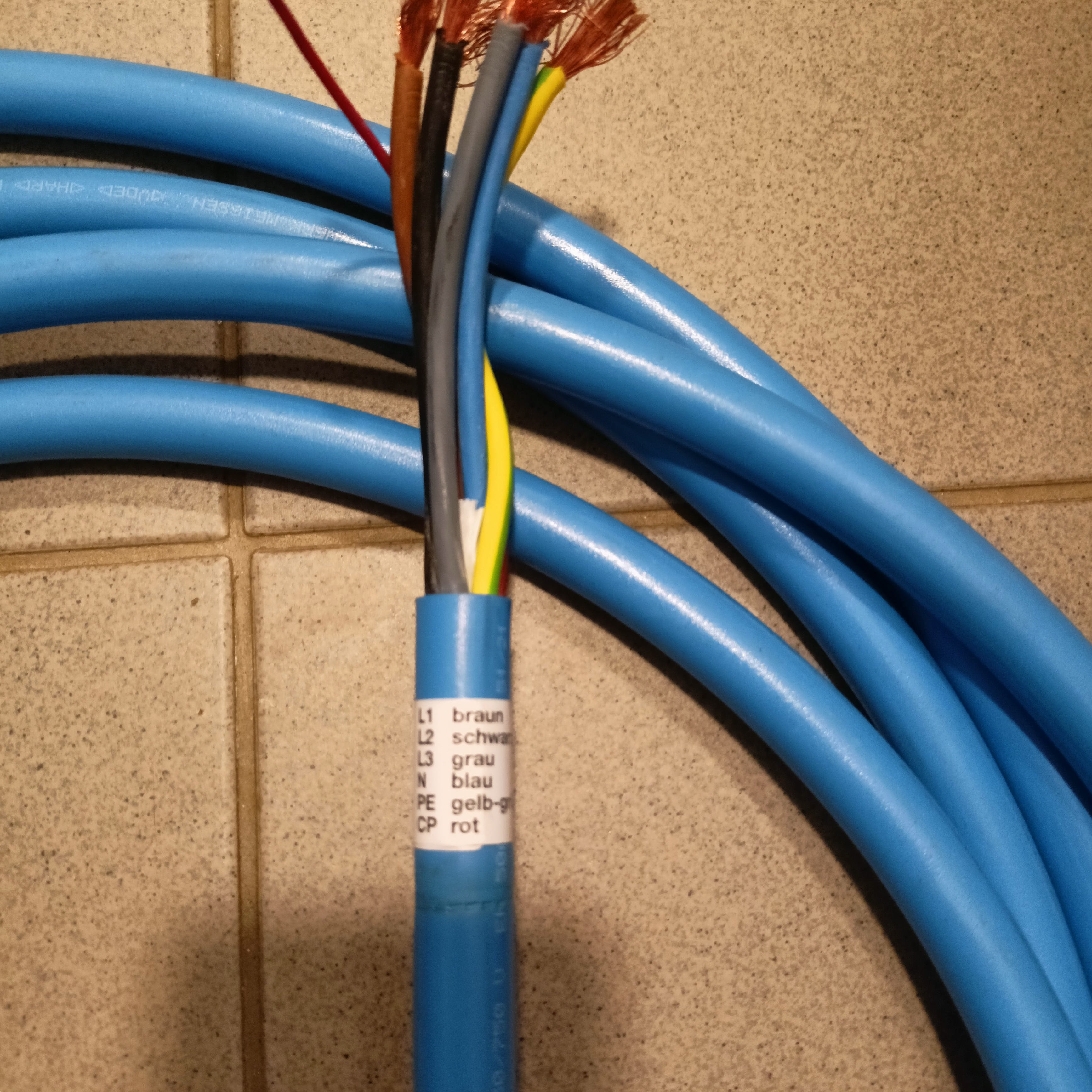nabízím nabíjecí kabel pro e-auto, 22kW 3x32A, s konektorem type 2 na jedné straně a "otevřeným koncem" na straně druhé. Délka 5m. Pořídil jsem ho k EVSE nabíječce / wallboxu, ale pro pohodlné připojení k autu mi chybí dalšího půl metru