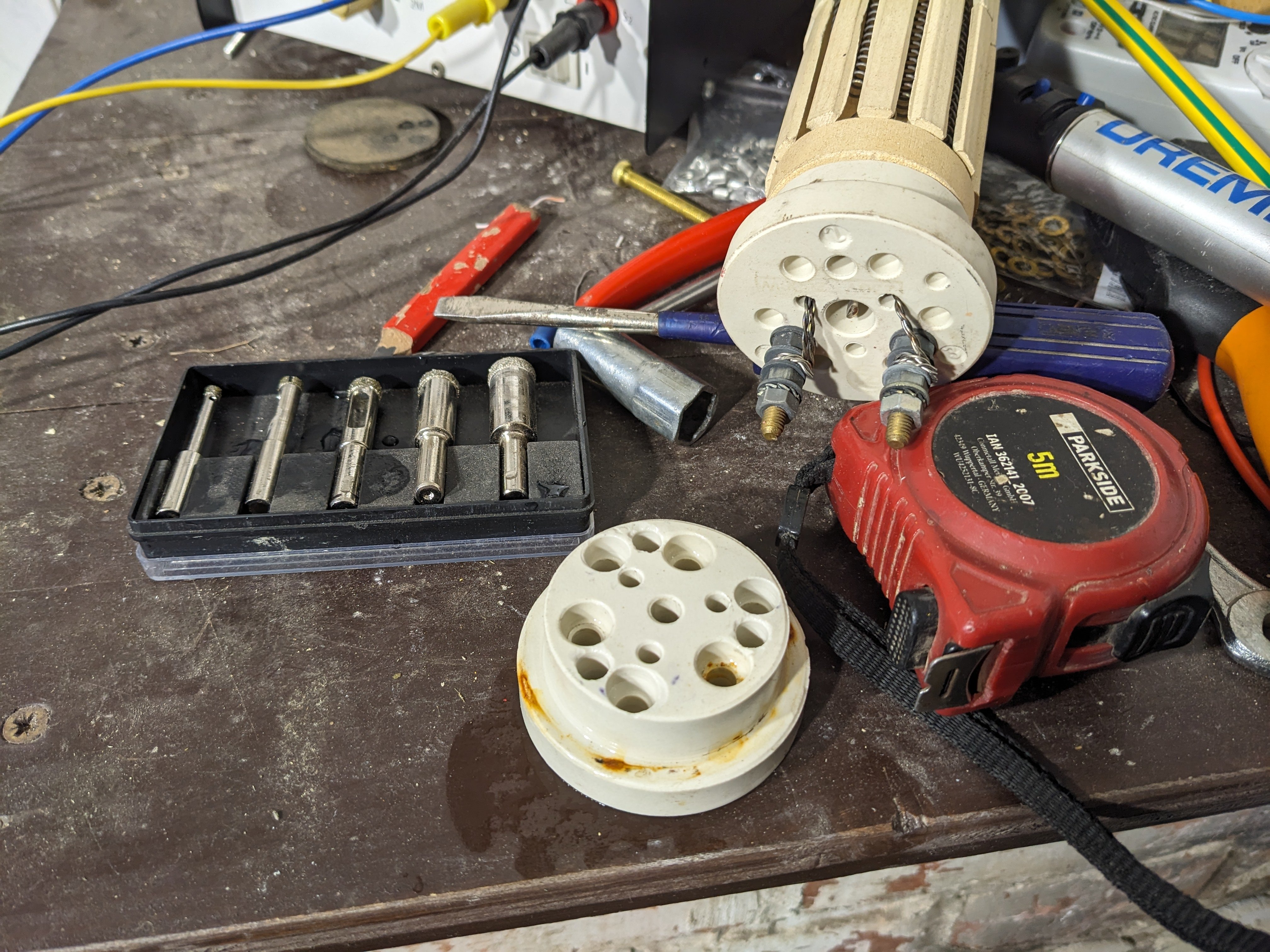 Vrtám ve vodní lázni diamantovou sadou z Lidlu. Tělesa z TPK 210 6,6 kW mají 2x1,1kW spojené na společných šroubcích.