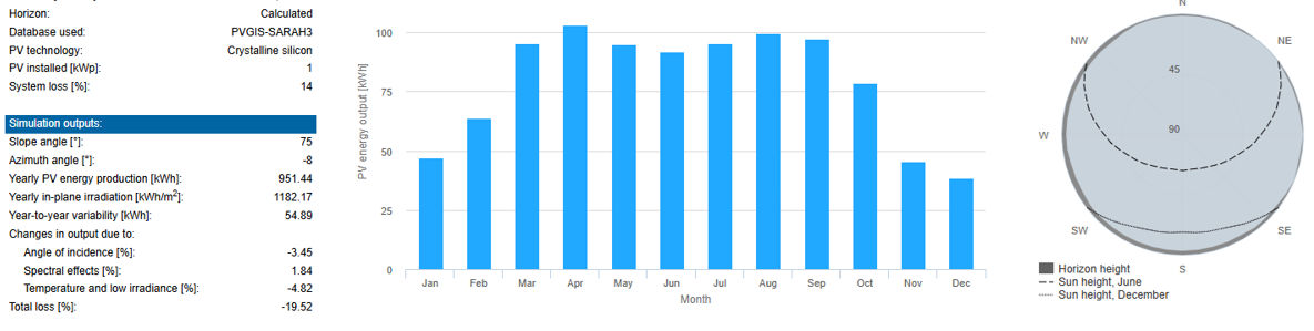 Tady je simulace na zisk z instalované 1kWp... jih -8st, sklon 75° = cca 950kWh tedy z 2,7kWp instalovaných by to mělo dát cca 2,5MWh/roksodar2 píše: úte bře 25, 2025 12:02 pm2) jj přesně tak, se to dá použít, třeba ja v létě když jsou dlouhé slunečné dny nastavím DVCC třeba na 10 -15 A a nabíjím celý den malým proudem.