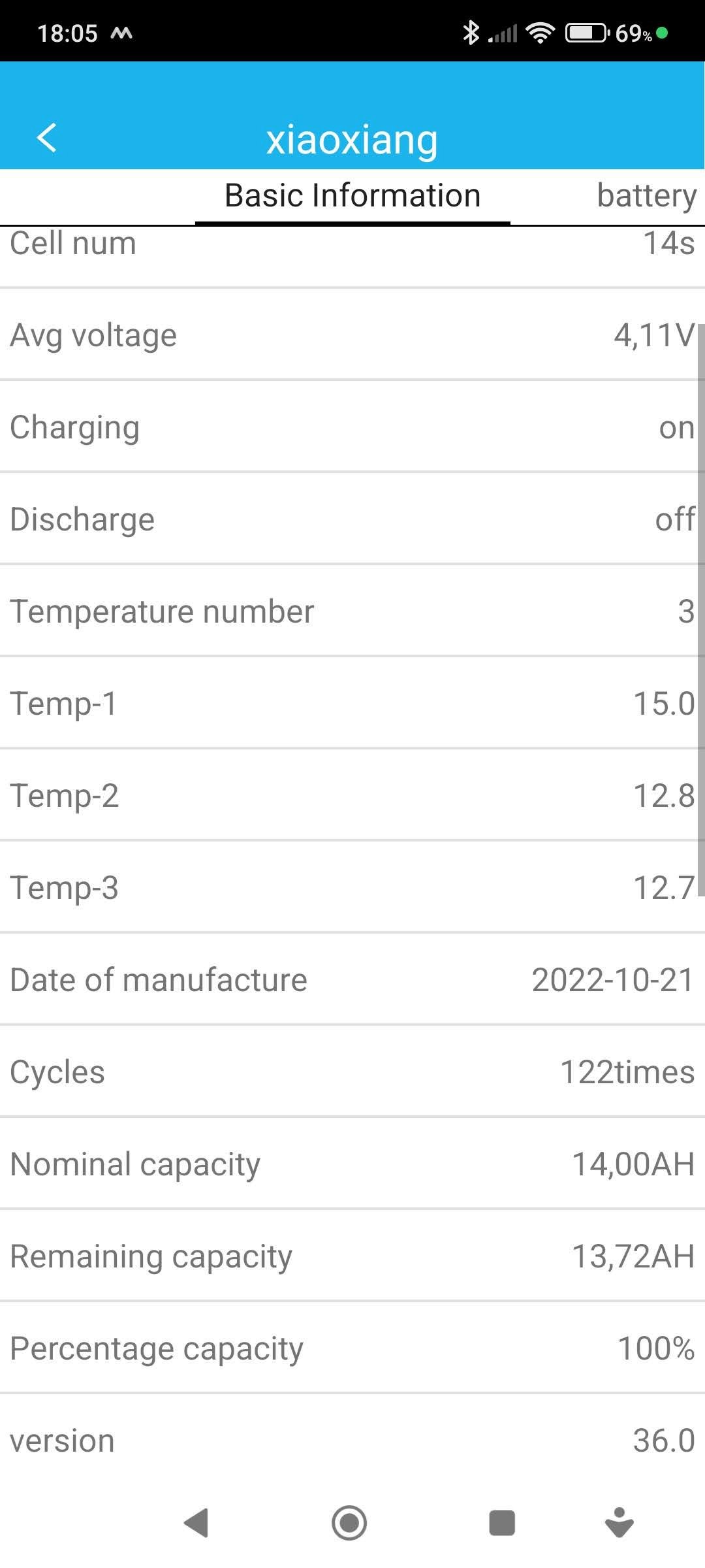 Prodávám 2x batterpack Li-ion, 14 článků 14Ah od výrobce Philion s BMS JBD 60A. Všechno koupené v březnu 2023 u Mivvy. Baterky byly použité v elektroskůtru, počet cyklů je 122, podle výrobce by měly mít články životnost 1000 cyklů. K baterkám přidám ještě 2 články, které jsem kupoval jako náhradní. Ideální by byl odběr komplet, vhodné pro využití v nějakém elektro přibližovadle nebo pokud by někdo potřeboval malou vyrovnávací/záložní baterku k FV a podpobně. Standartní proud pro nabíjení 14A, vybíjení 42A a max. proud 70A. Baterky byly zapojené paralelně, nabíjení proudem 5A A vybíjení maximálně 50A dohromady (25A na pack). Články jsou propojené pájením (licna z článku na článek) a slepené k sobě oboustrannou pěnovou páskou, bočnice pro vyztužení přilepené stejně. Provozováno dva roky od jara do podzimu.