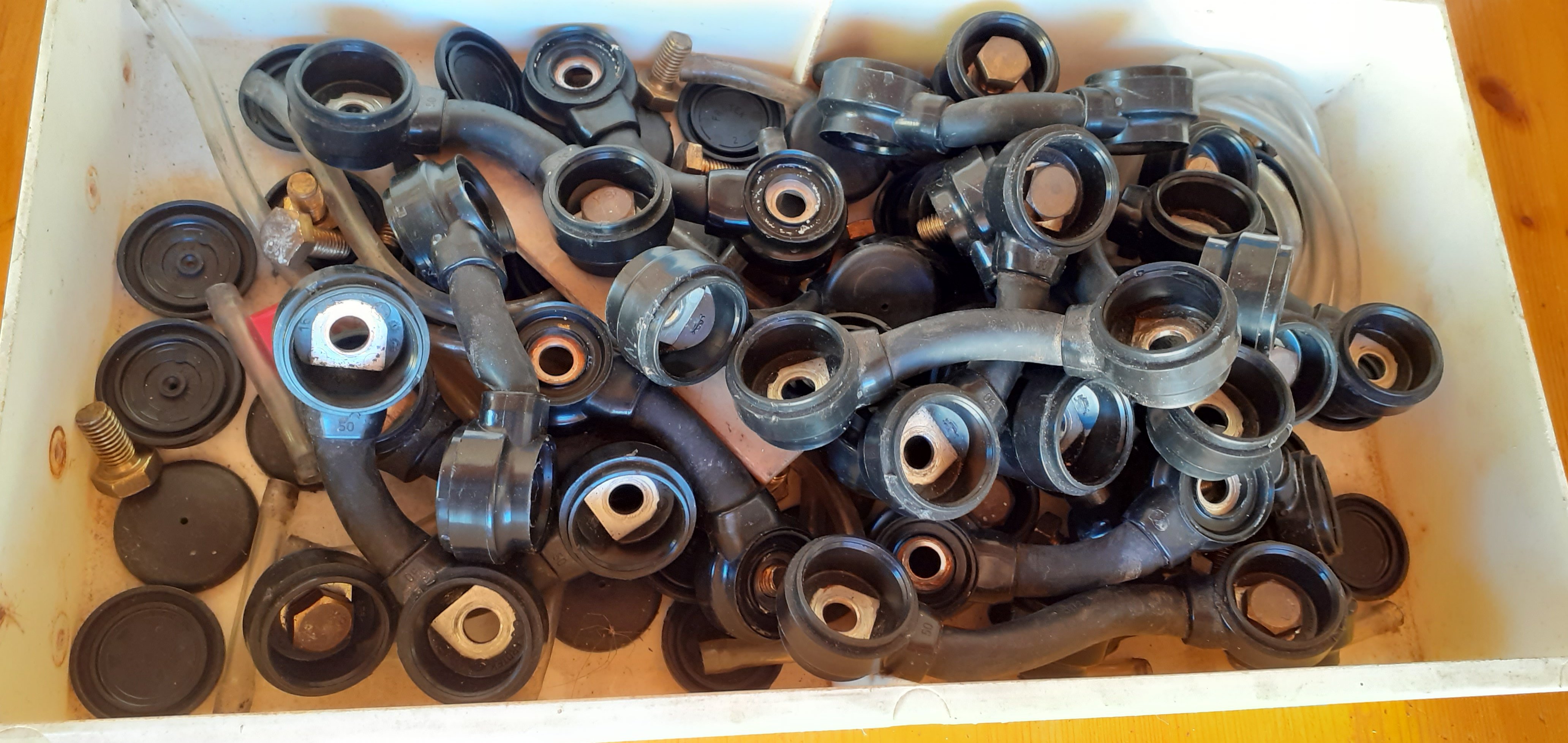 Nabízíme prepoje na 24 kusů trakcních baterií s délkou 11 cm (střed oka na střed oka). Cena je 20 € plus poštovné. Prepoje jsou vhodné pro sestavení nebo opravu bateriových bloků a zajišťují spolehlivé spojení jednotlivých článků.
