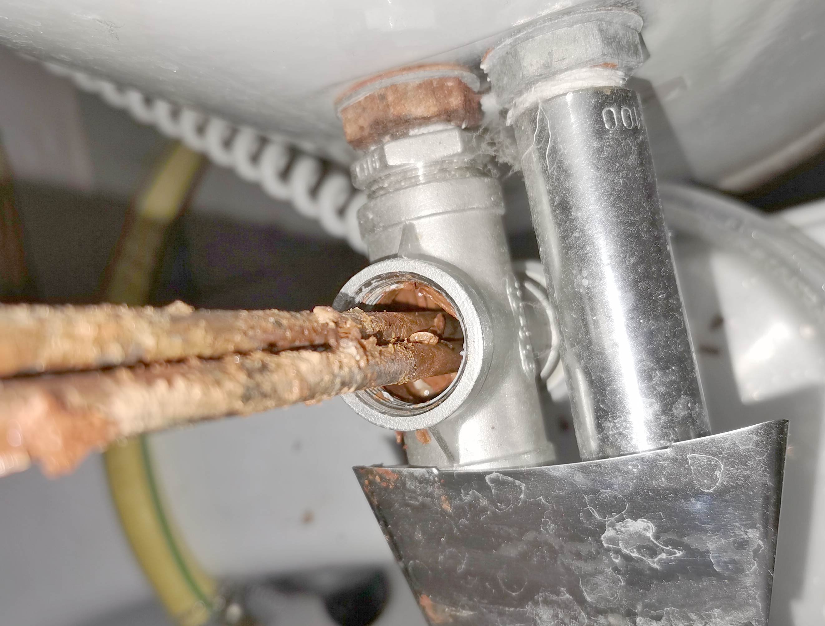 Horní koleno a ventil jsou v podstatě úplně čisté, podobně, jak to vypadá na té fotce šroubení.