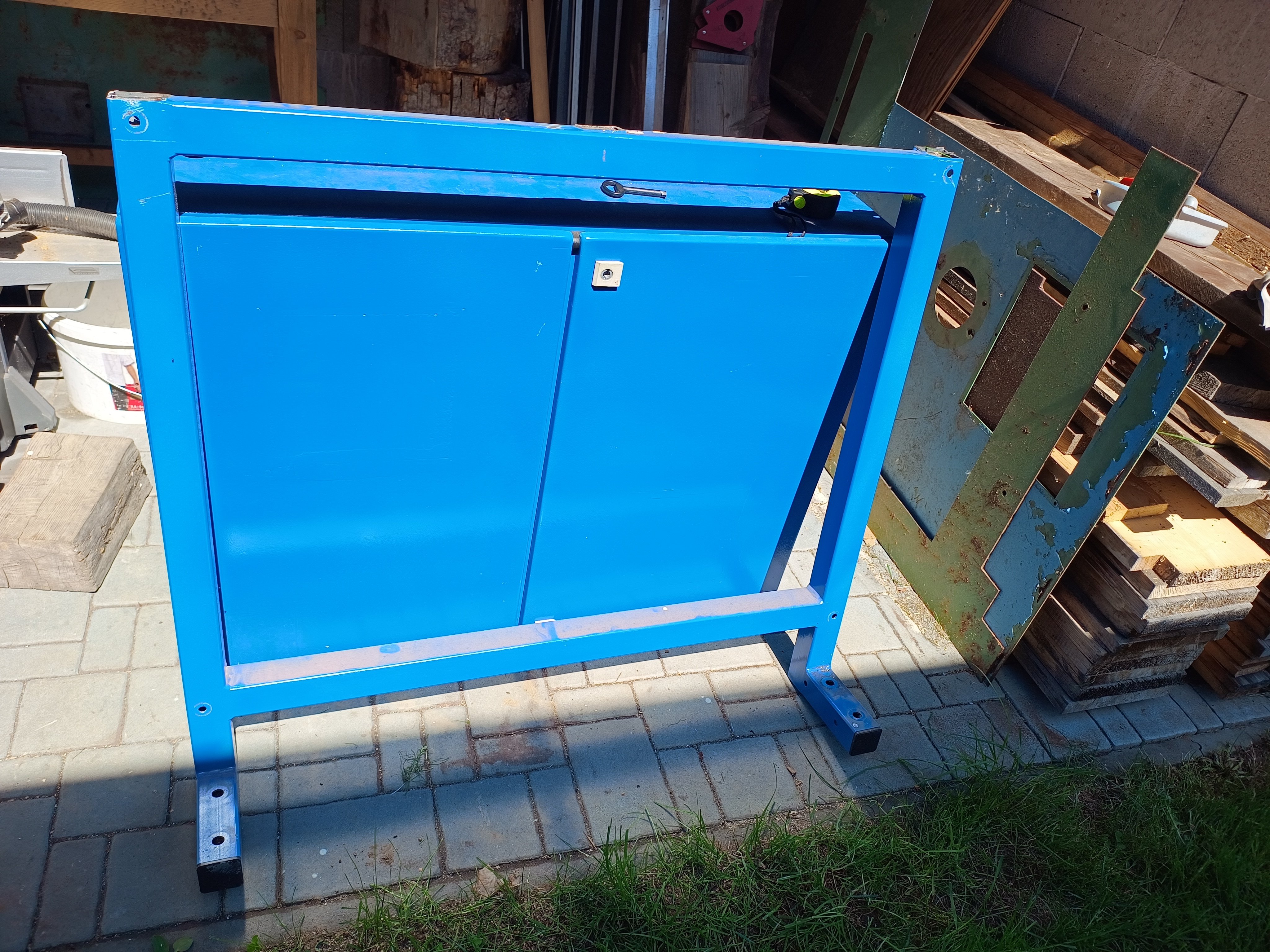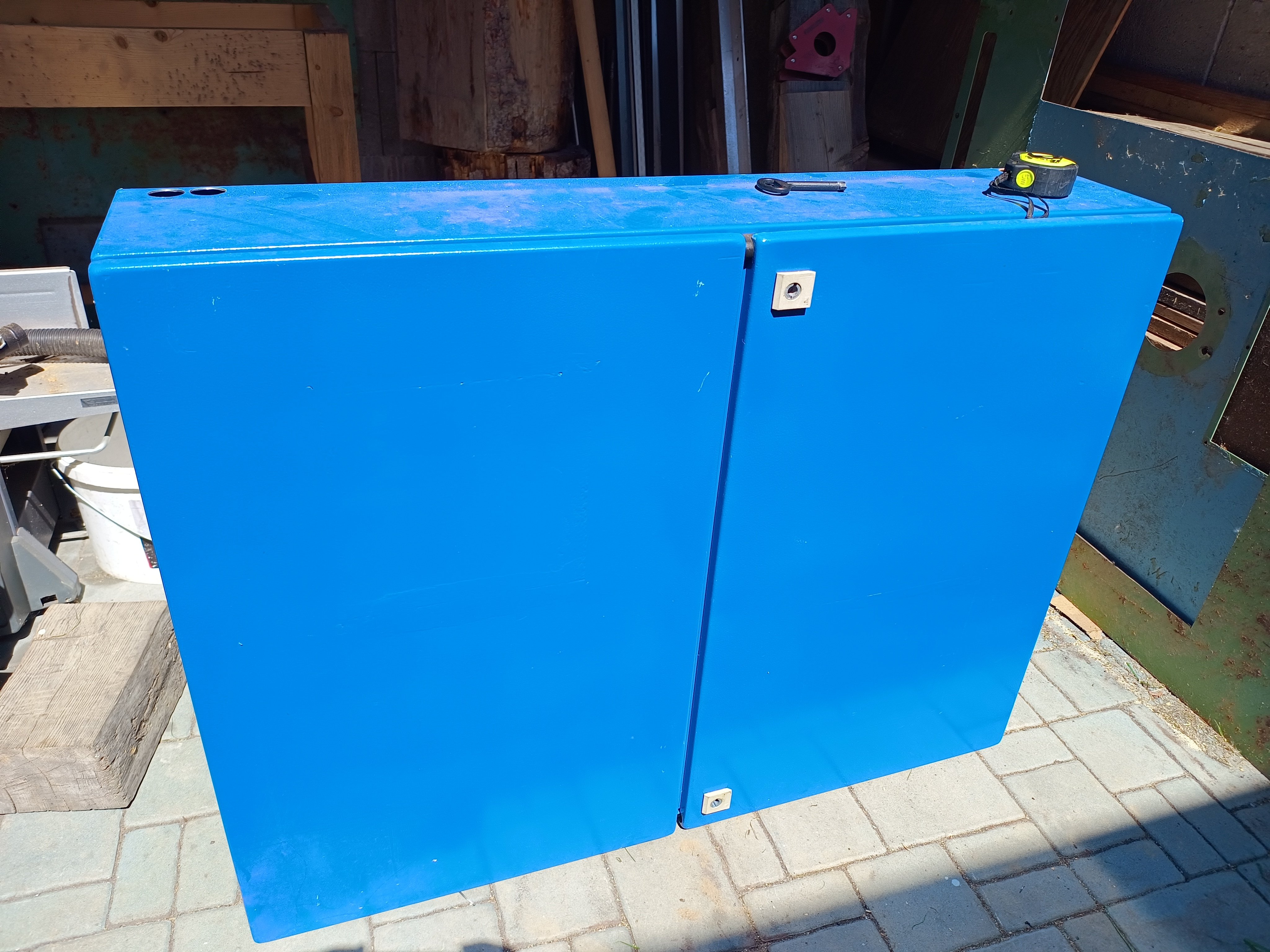 Prodám plechový rozvaděč v kterém jsem měl baterie, bohužel po rozšíření už se mi tam nevešly. rozměry: šířka 100cm, výška 75cm a hloubka 20cm, je k tomu podstavec.