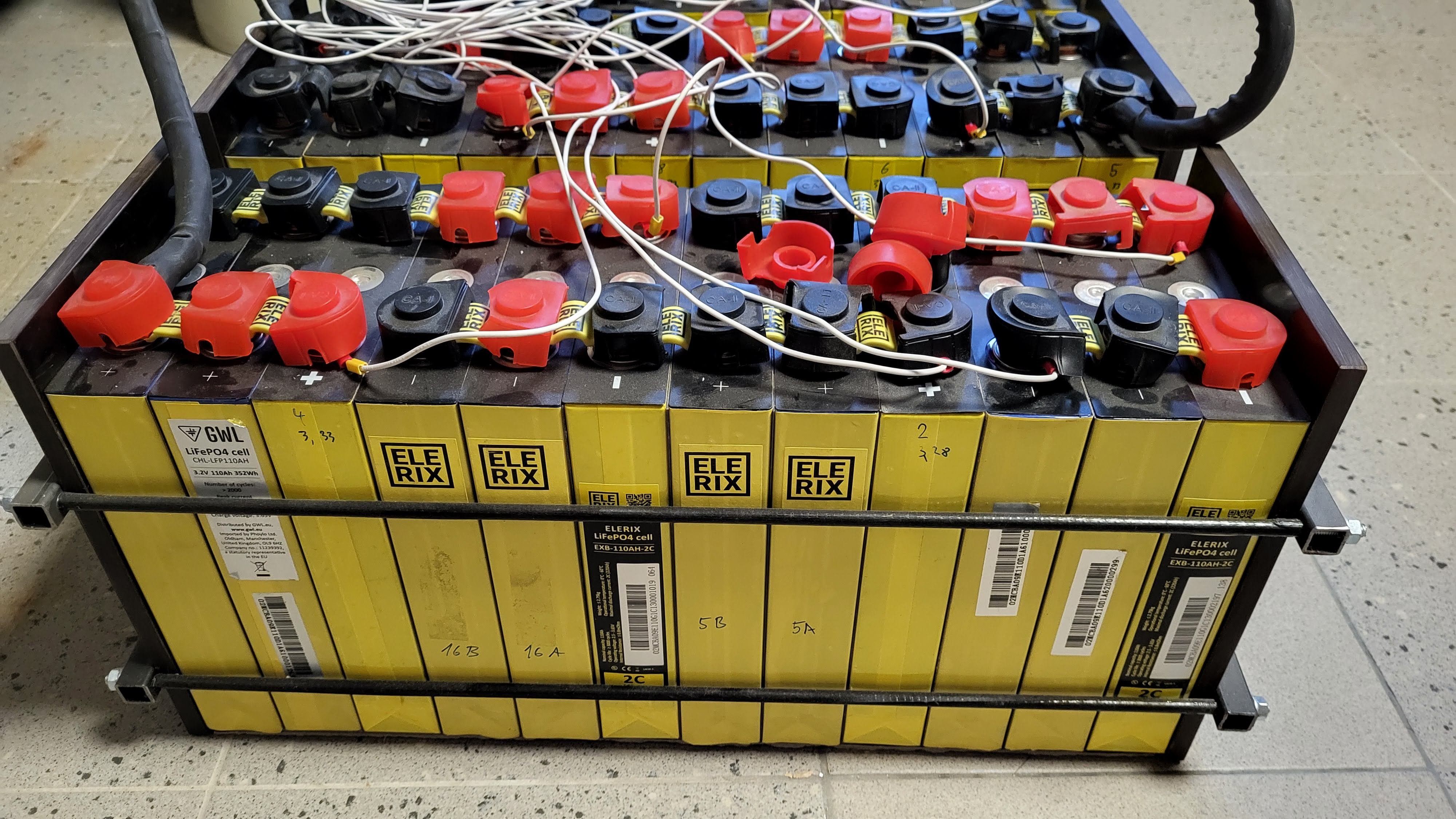 Prodám bateriové low voltage úložiště 48V / 330Ah / 16 kWh vhodné pro střídače Victron či jiné. Úložiště není osazeno žádnou BMS, jen holé články pospojované do konfigurace 3P16S. Jediná aktivní elektronika na úložišti je cca 4A aktivní balancér QUCC, který zajišťuje přesné sbalancování článků. Možno osadit libovolnou BMS pro 16 článků, doporučuji např. JK BMS (https://www.jkbms.com/product/jk-pb2a16 ... 2a16s-20p/)