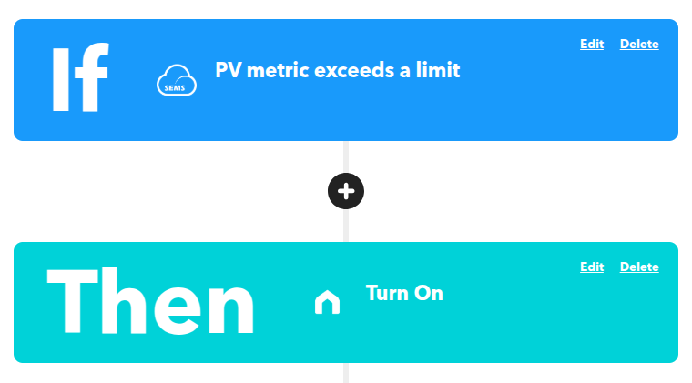 Pro střídače GoodWe je dostupná integrace s IFTTT, která umožňuje automatizovat spínání zařízení přes smart zásuvky v domácí WiFi bez nutnosti dalšího hardwaru nebo zásahu do elektrických rozvodů. Uživatel si může nastavit limity výkonu nebo jiné parametry střídače, například stav nabití baterie (SOC), a podle nich ovládat například TP-link Tapo, Tuya nebo Samsung zásuvky. Data jsou čtena s mírným zpožděním ze SemsPortalu, což umožňuje pohodlnou a efektivní domácí automatizaci.