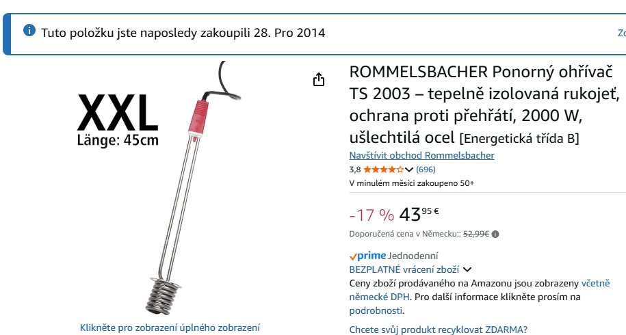 Nyní tam házím ponorný ohřívač...
