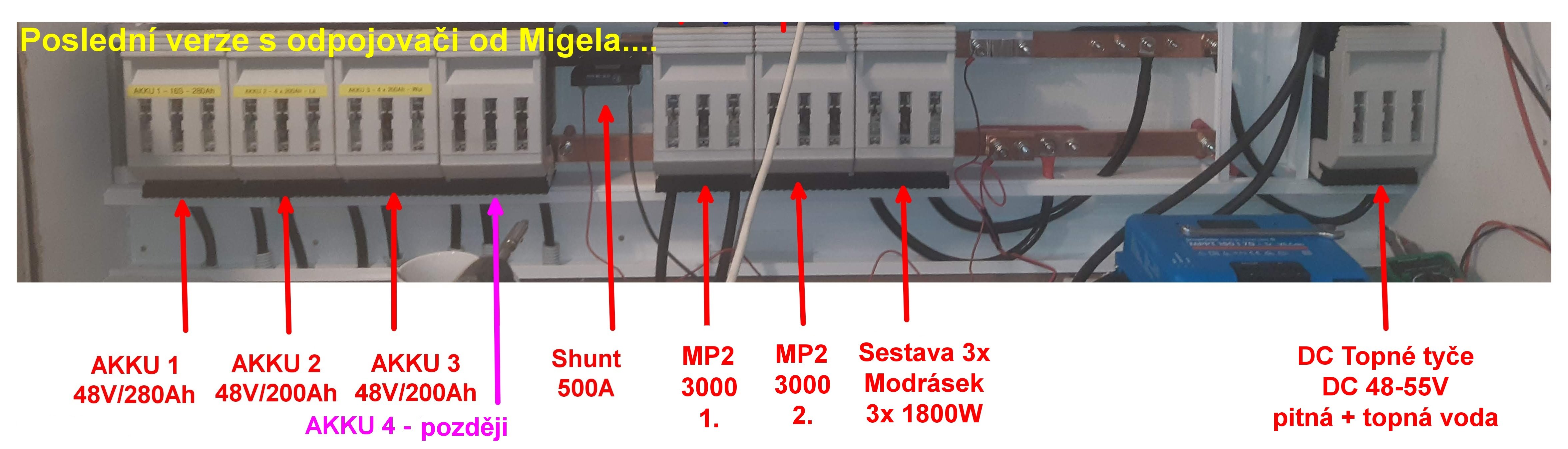 Každou ze 3 sad akumulátorů mám připojenou přes pojistkový odpojovač, + i -. V případě, že bych potřeboval něco s baterkou dělat, tak ji bezpečně odpojím od obou pólů.