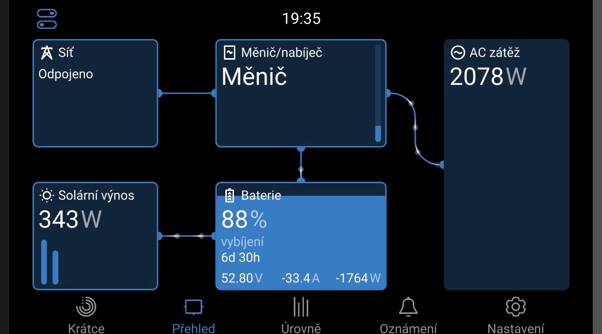 Jednotky asi správně budou. Když něco dávají panely a z baterky jde maličký výkon, tak to zřejmě systém spočítá na několik dní provozu. Když se odběr z baterky zvýší, tak číslo jde dolů a když je to méně než den, tak přepne na hodiny a minuty. Cerbo také nemá