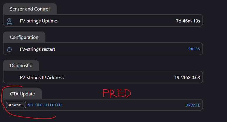 Ak urobíte update ESPhome na 2025.7, musíte upraviť YAML, inak prídete o možnosť OTA a budete behať s laptopom a USB káblom po všetkých zariadeniach! Treba explicitne pridať aj direktívu pre web_server, aj keď samotný web_server nepoužívate.