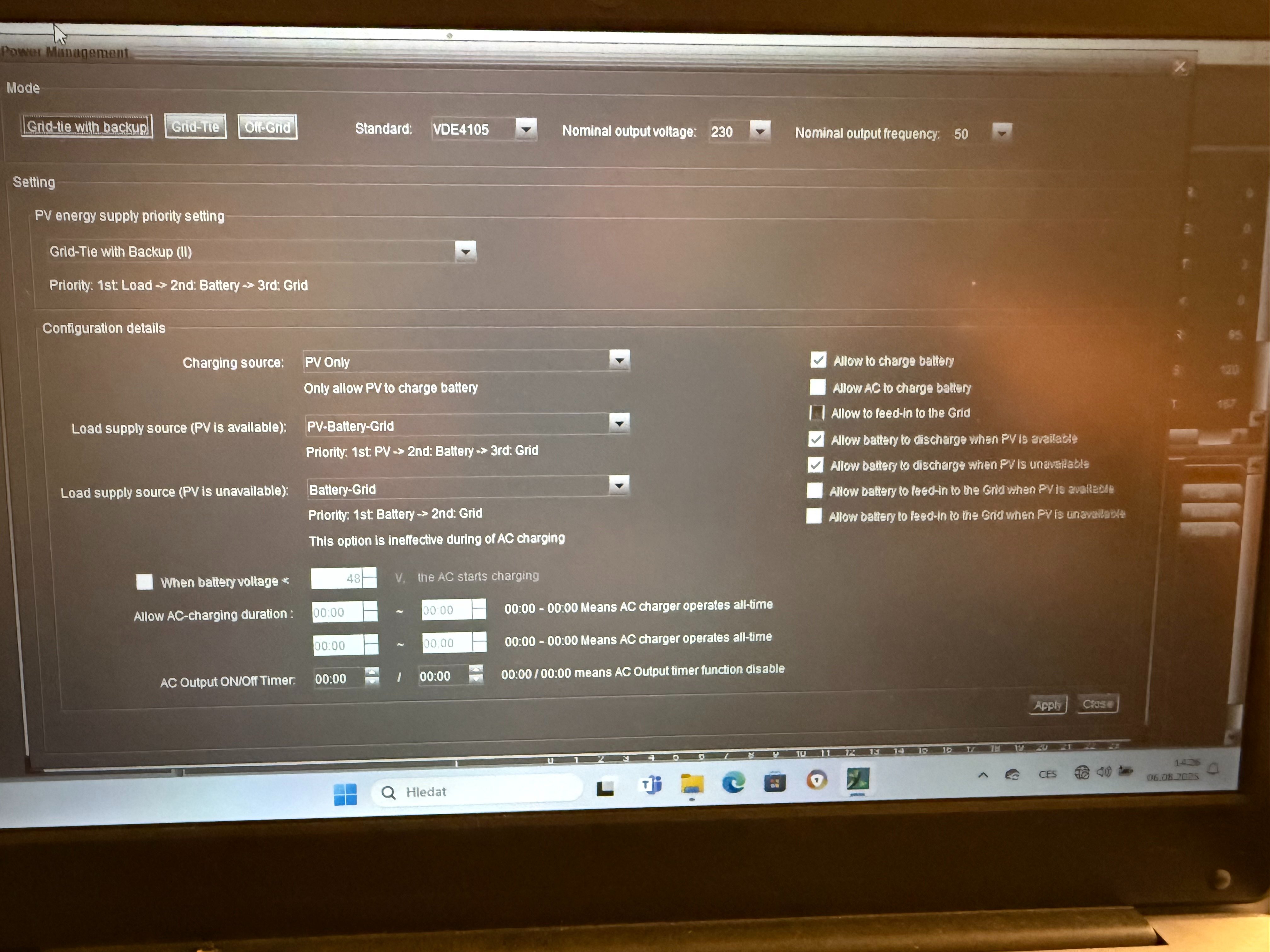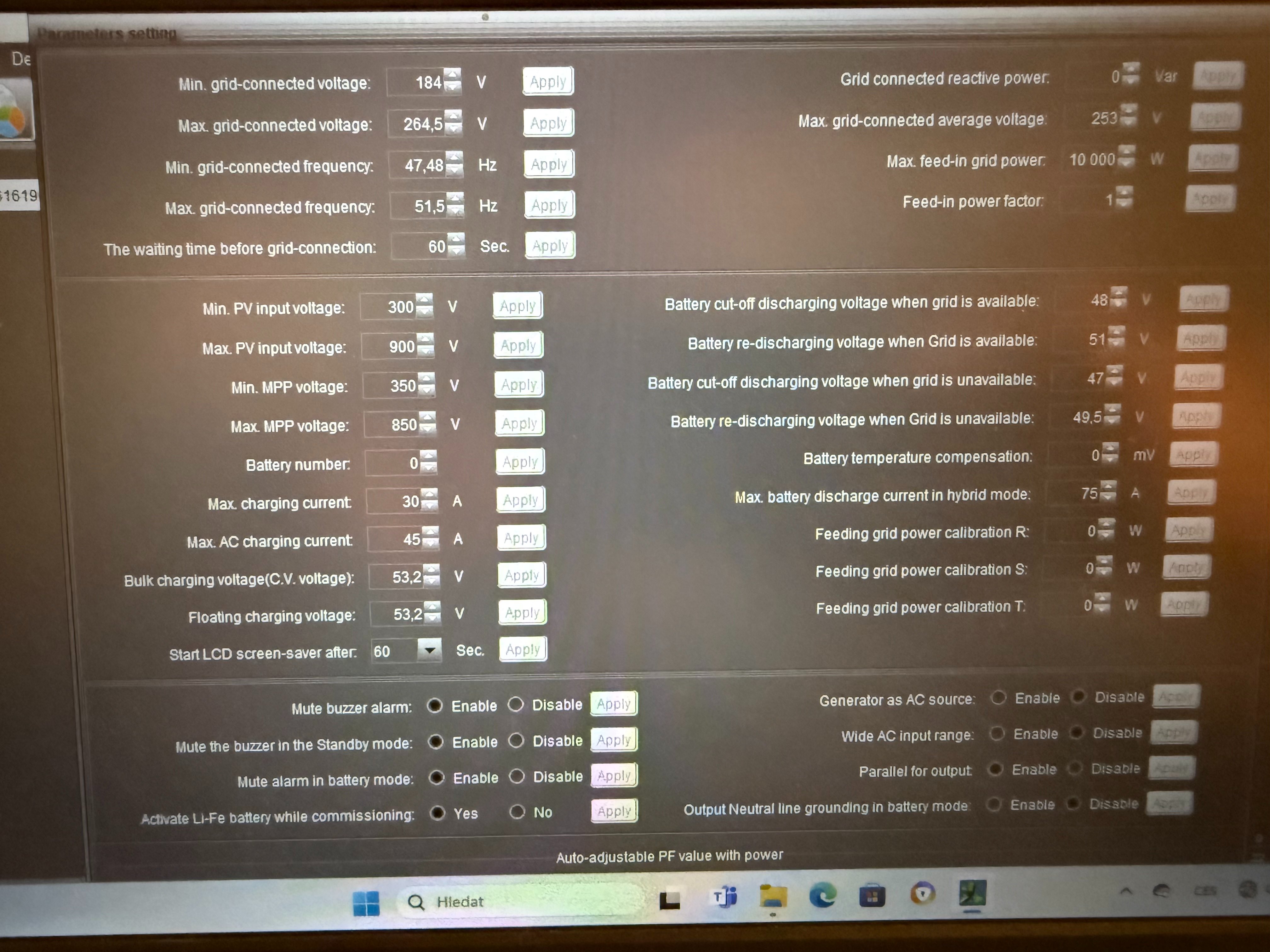 potrebuji poradit jestli mam spravne nastavene hodnoty v software InfiniSolar. Prikladam fotky.Dekuji