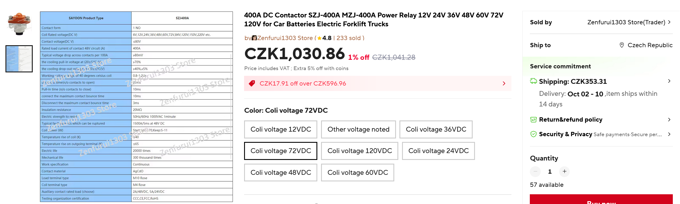 Důležité je aby to bylo relé se dvěma cívkami - na štítku jsou zobrazeny jako L1 a L2. Pak má ta přídržná podstatně menší spotřebu a jednak se šetří elektřinou a i se to méně hřeje. Jsou pro různé napětí ovládací cívky. I když mám 48 V systém, tak toto relé mám s cívkou 72 V, protože jsem si ověřil že i toto spíná při 40 V a rozepíná při 17 V. Tím dosáhnu ještě menší spotřebu 2.7 W.