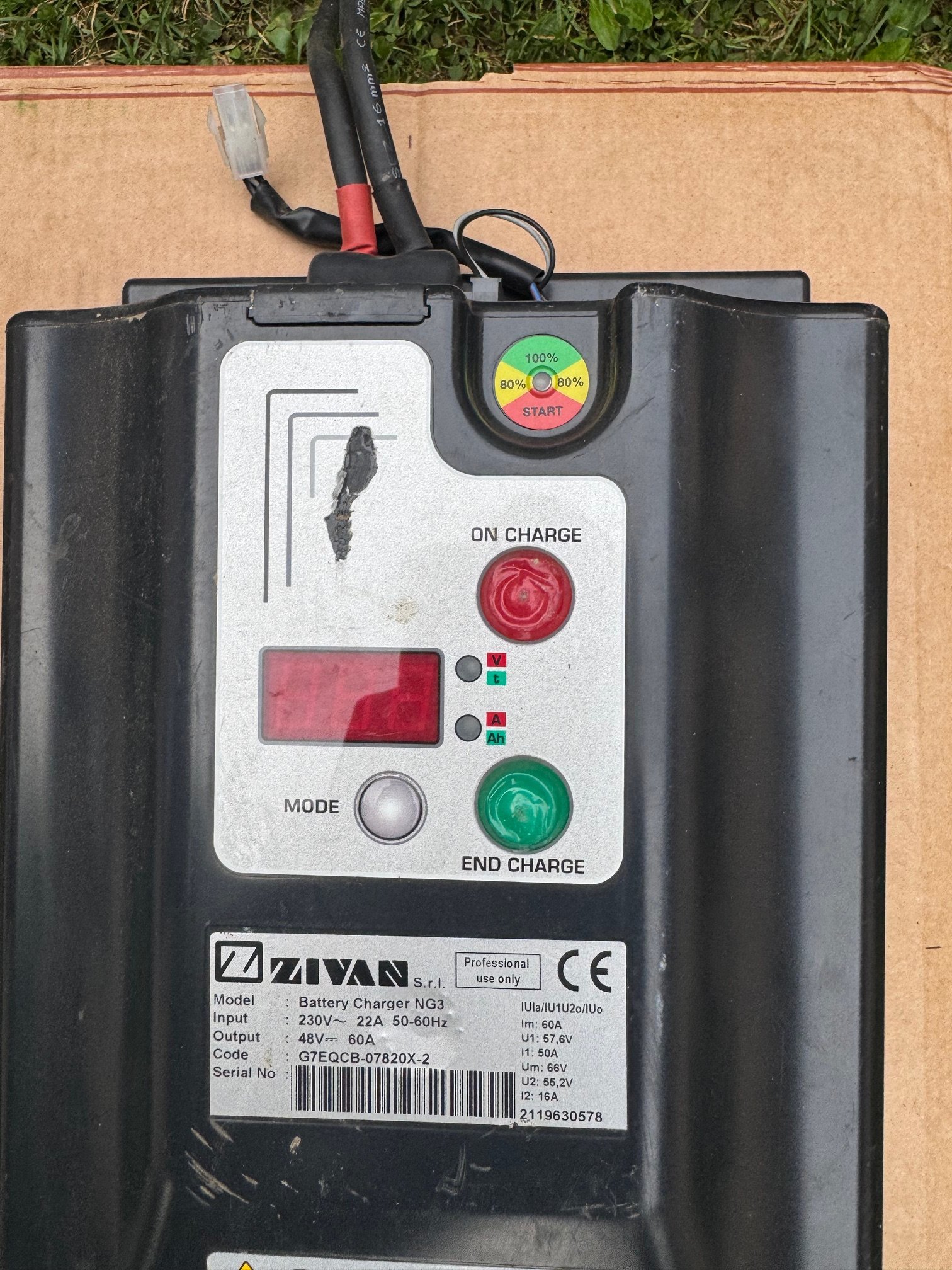 Prodává se funkční nabíječka baterií MIDAC NG3 s výstupem 48V a proudem až 60A, vhodná pro jednofázové připojení 230V. Nabíječka byla používána, přívodní kabel je volný, lze přidat zdarma. Diskuze zahrnuje dotazy na regulaci výstupu a možnosti připojení přes CAN či RS485. Cena byla snížena z 1500 Kč na 1200 Kč, možnost osobního odběru v Praze nebo zaslání.