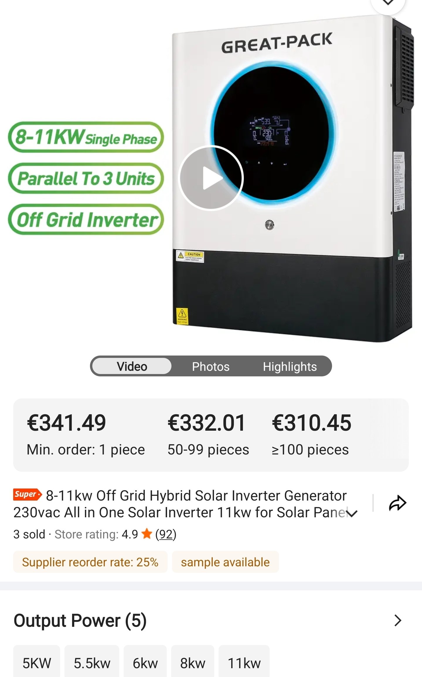 ahojte zhanam 3x 8kw alebo 3x11kw offgrid menice na 3 fazovu sustavu pre 48V baterie. musia mat aspon 2x4000w vstupy. ake pouzivate vy? zatial som dostal ponuku na 3x11kw za 1800€ z toho 400€ je posta.