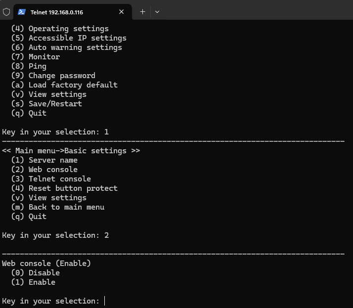 V minulosti nebyl žádný problém se webově k nim připojit a nastavovat je, nyní mi připojení přes web nefunguje. Zůstalo naštěstí funkční připojení přes telnet, takže zatím nastavuji tímto. Přes konzoli telnet je to ale náročnější.