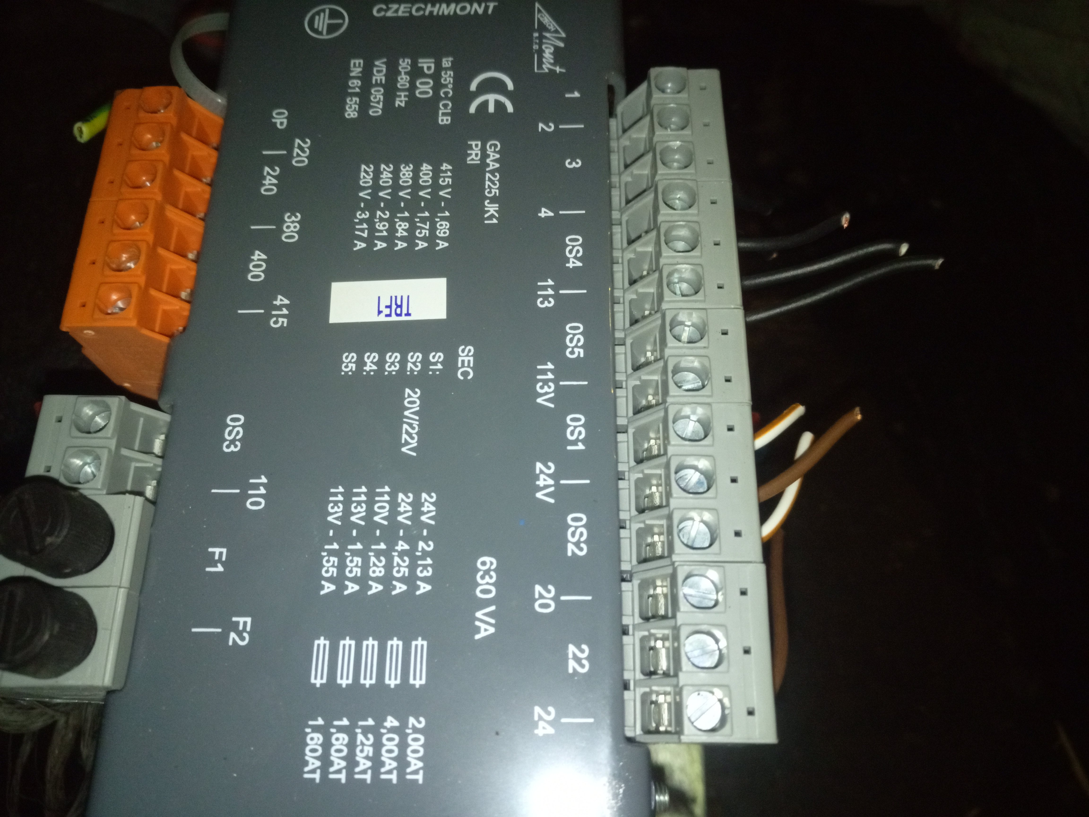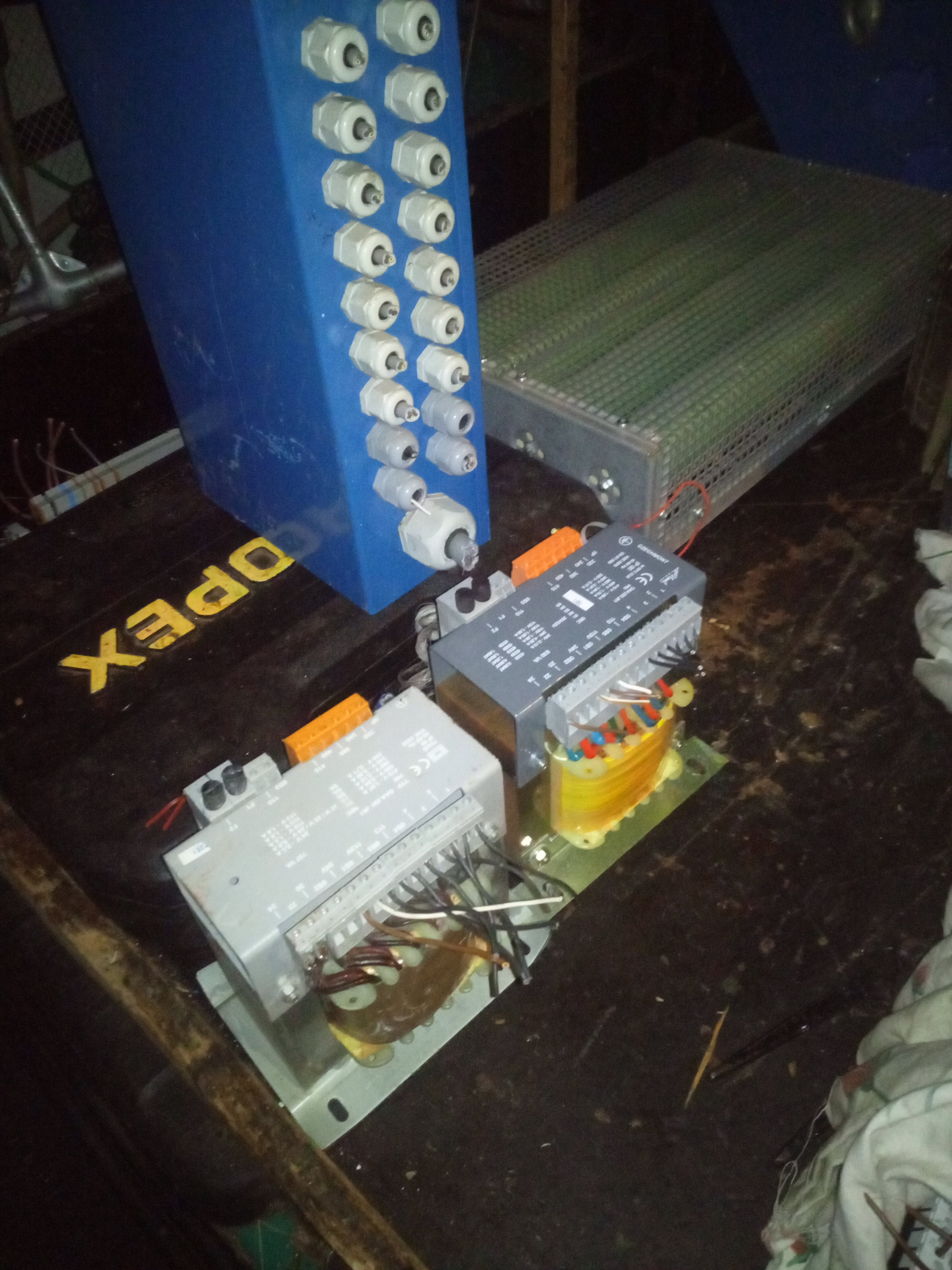 Třeba u větších beden se používá toto, 110V na cívky stykačů a 24V na jiné cívky. Asi 10kg. Je to přišroubovaný vertikálně na desku vedle DIN lišt.