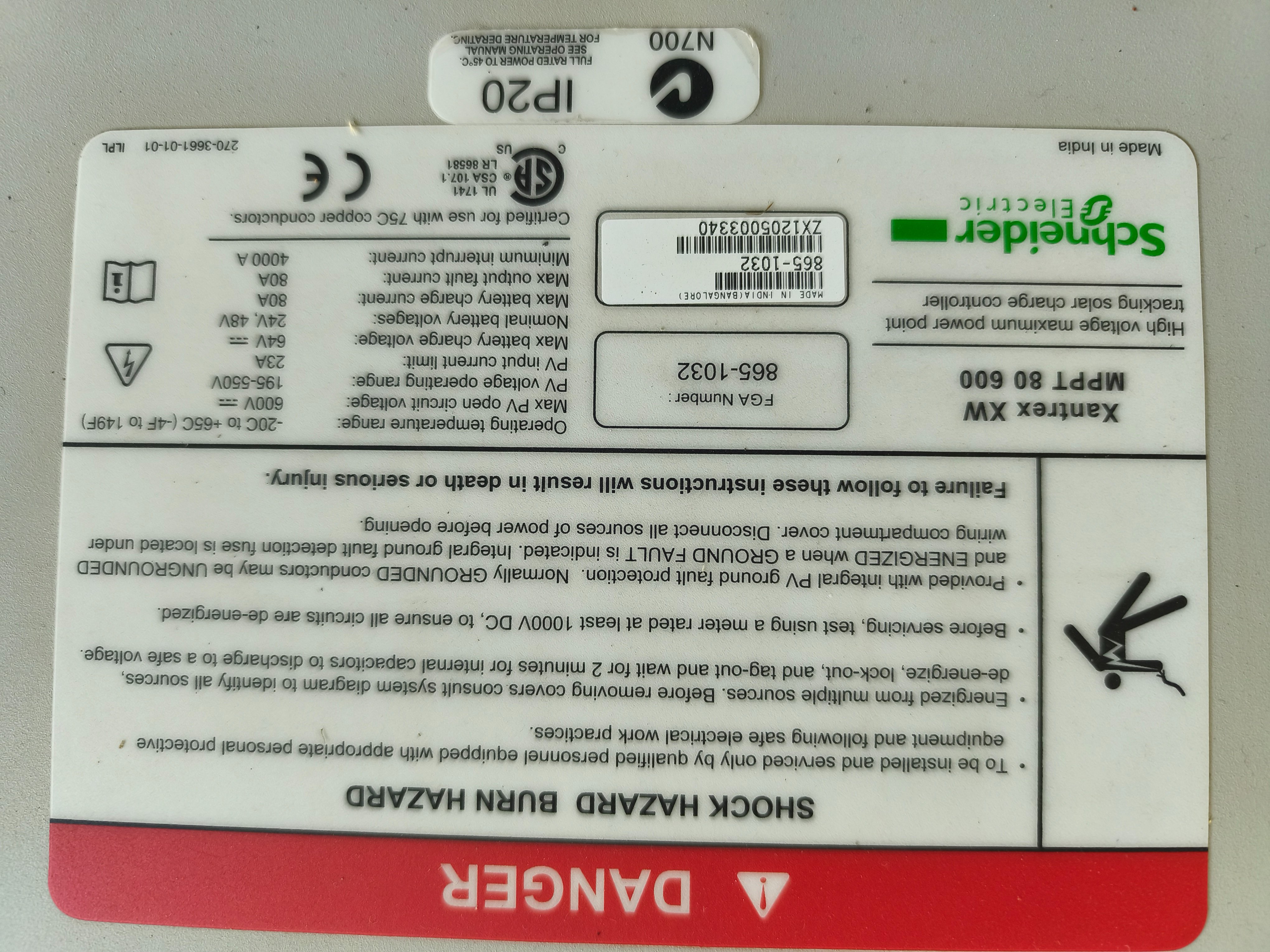 Nabízím k prodeji regulátor Xantrex XW MPPT 80 600, u kterého přestalo fungovat nabíjení z fotovoltaických panelů. Ostatní funkce zařízení jsou v pořádku. Cena je 3000 Kč, vhodné jako náhradní díly nebo k opravě.