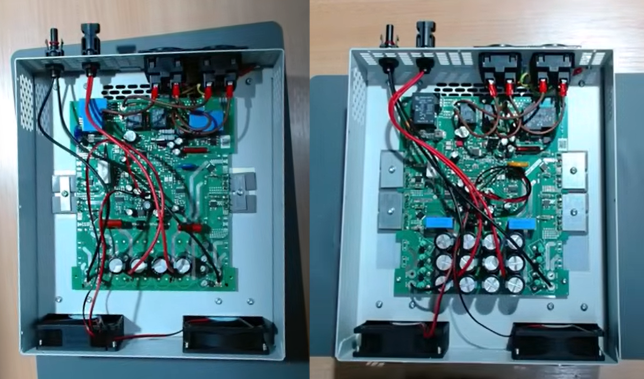 Tentýž měnič v různých časových obdobích uvnitř - a ,,jak to číňan uvnitř zlevnil" (v levo verze novější) :