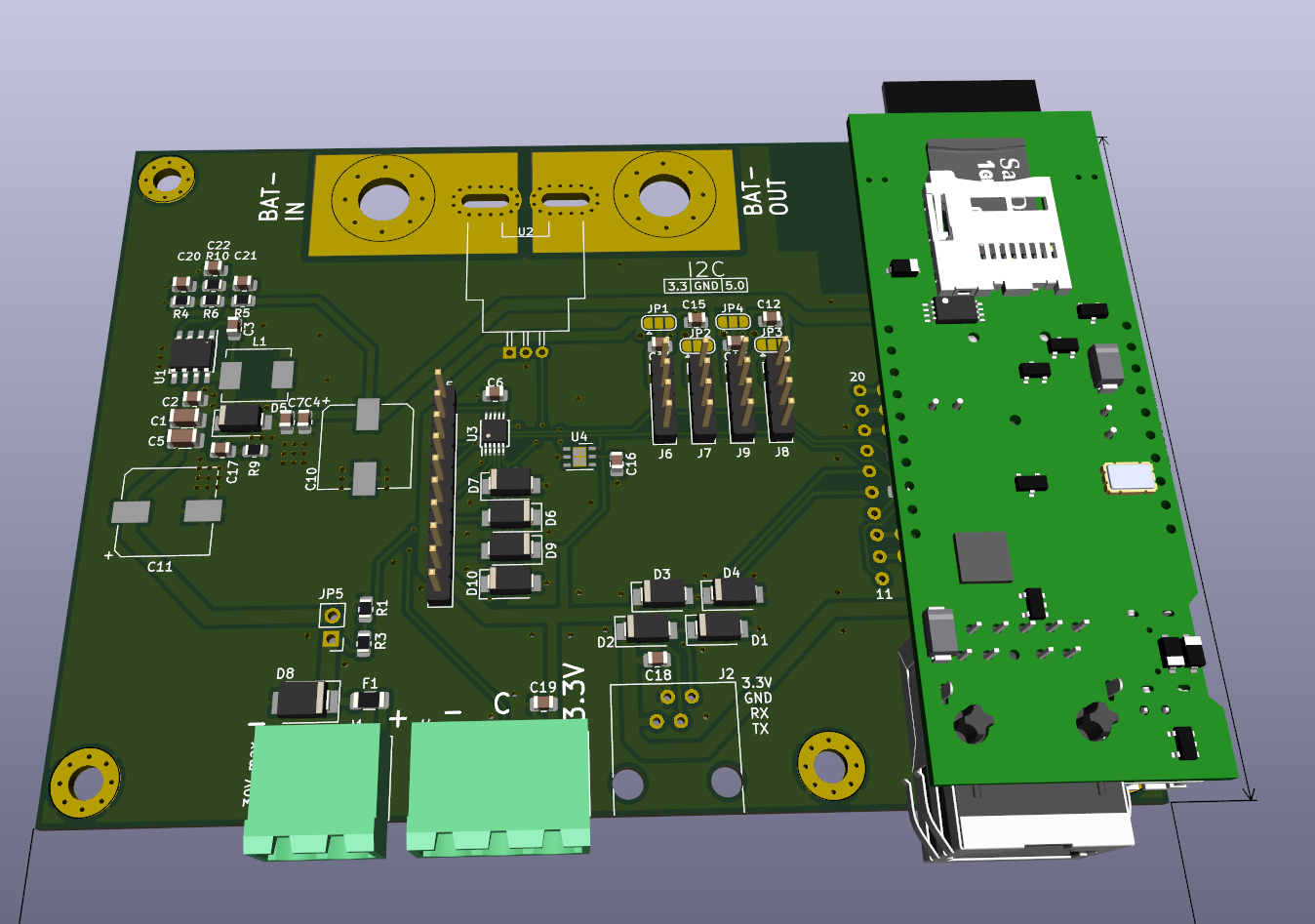Jde to cele napajet bud z baterie UPS a nebo po POE. Software pak zkousi neco pocitat a odhadovat SOC baterie pri vybijeni. Neni to moc chytre ale neco to odhadne. Nepocita energii z baterie, SOC to jen odhaduje na zaklade napeti a zadanych parametru. Pro UPS mi to prislo dostatecny. Neumi to nic vypnout nebo zapnout ve stavu jake to je. Nepotreboval jsem to. Pripojit desku s rele po i2c by nebyl problem.