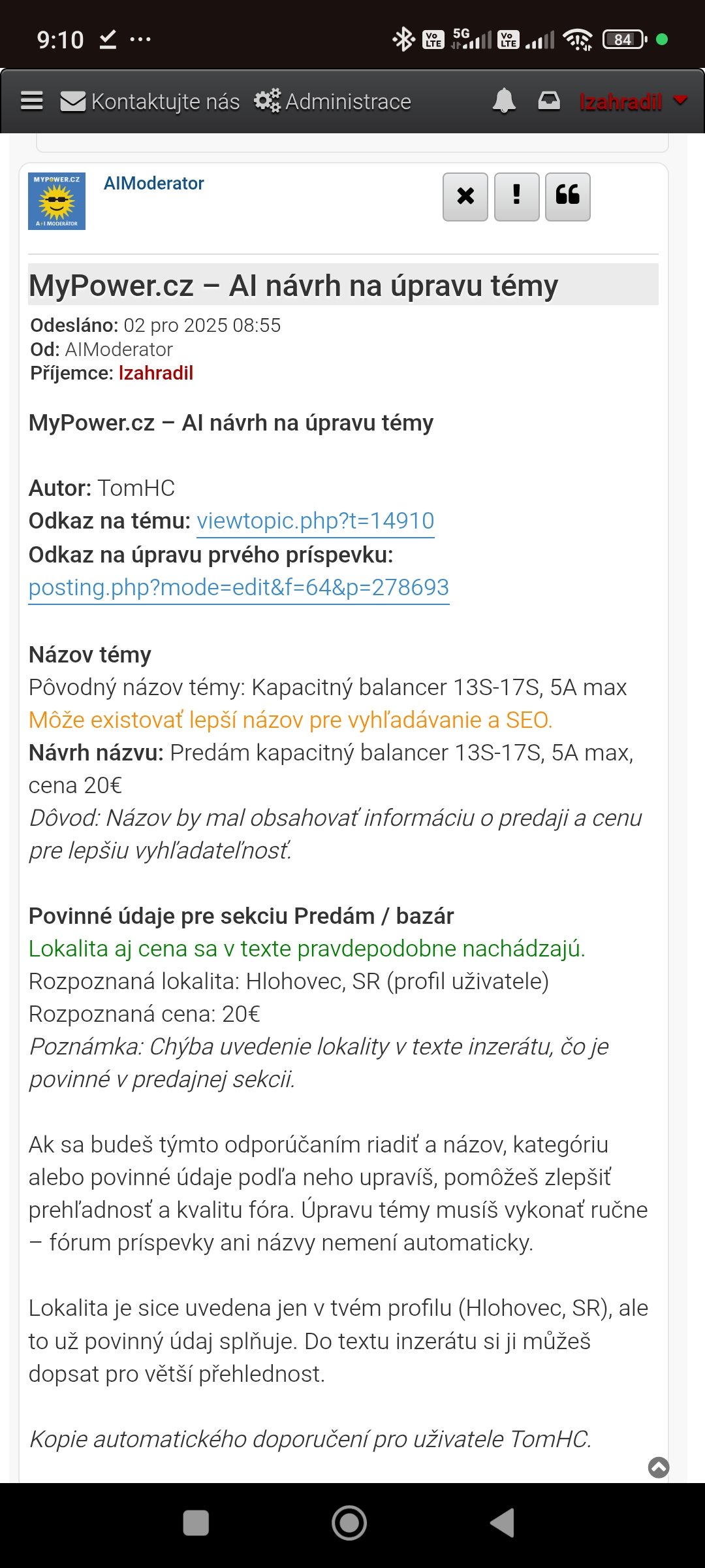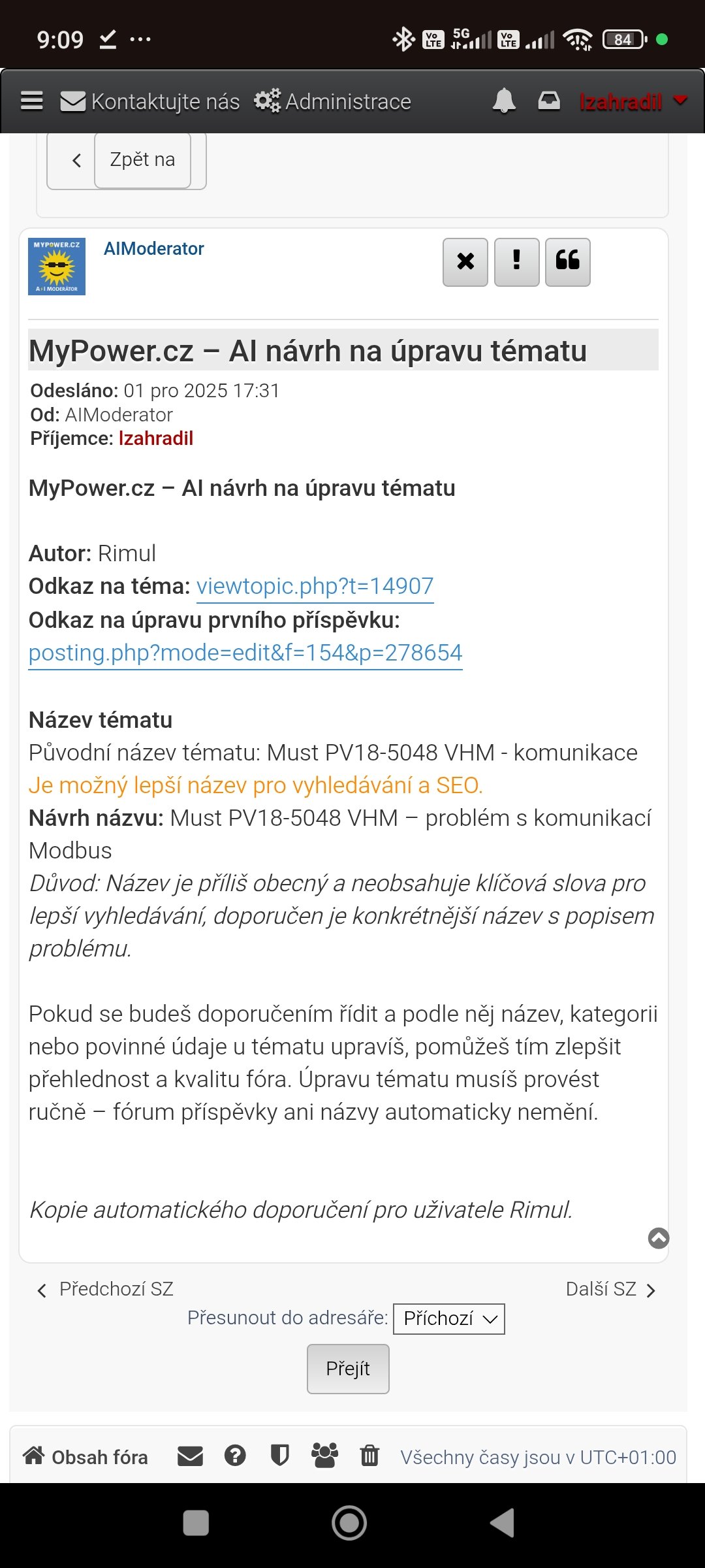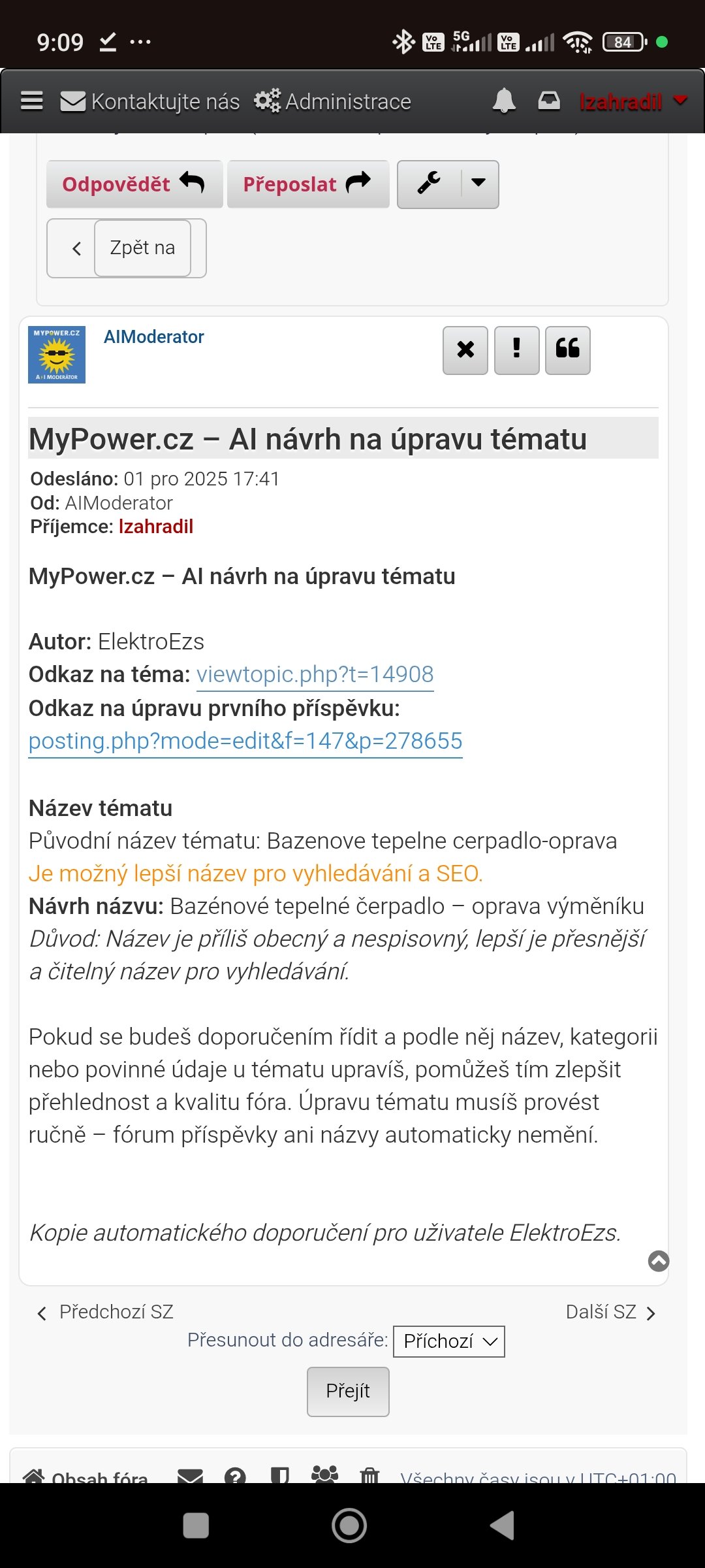 Re: AI Moderátor – nový pomocník pro zakládání témat a zlepšení přehlednosti fóra