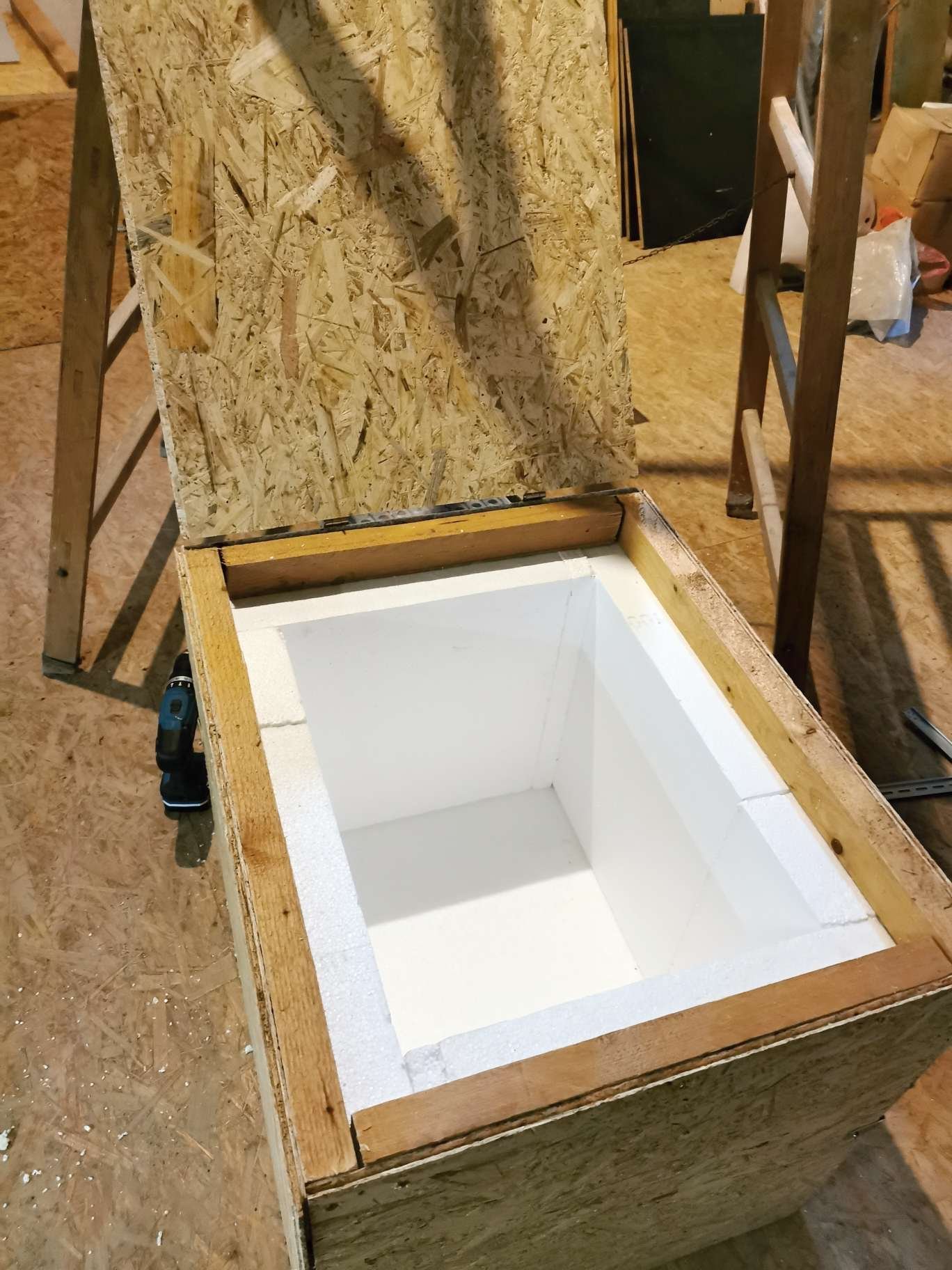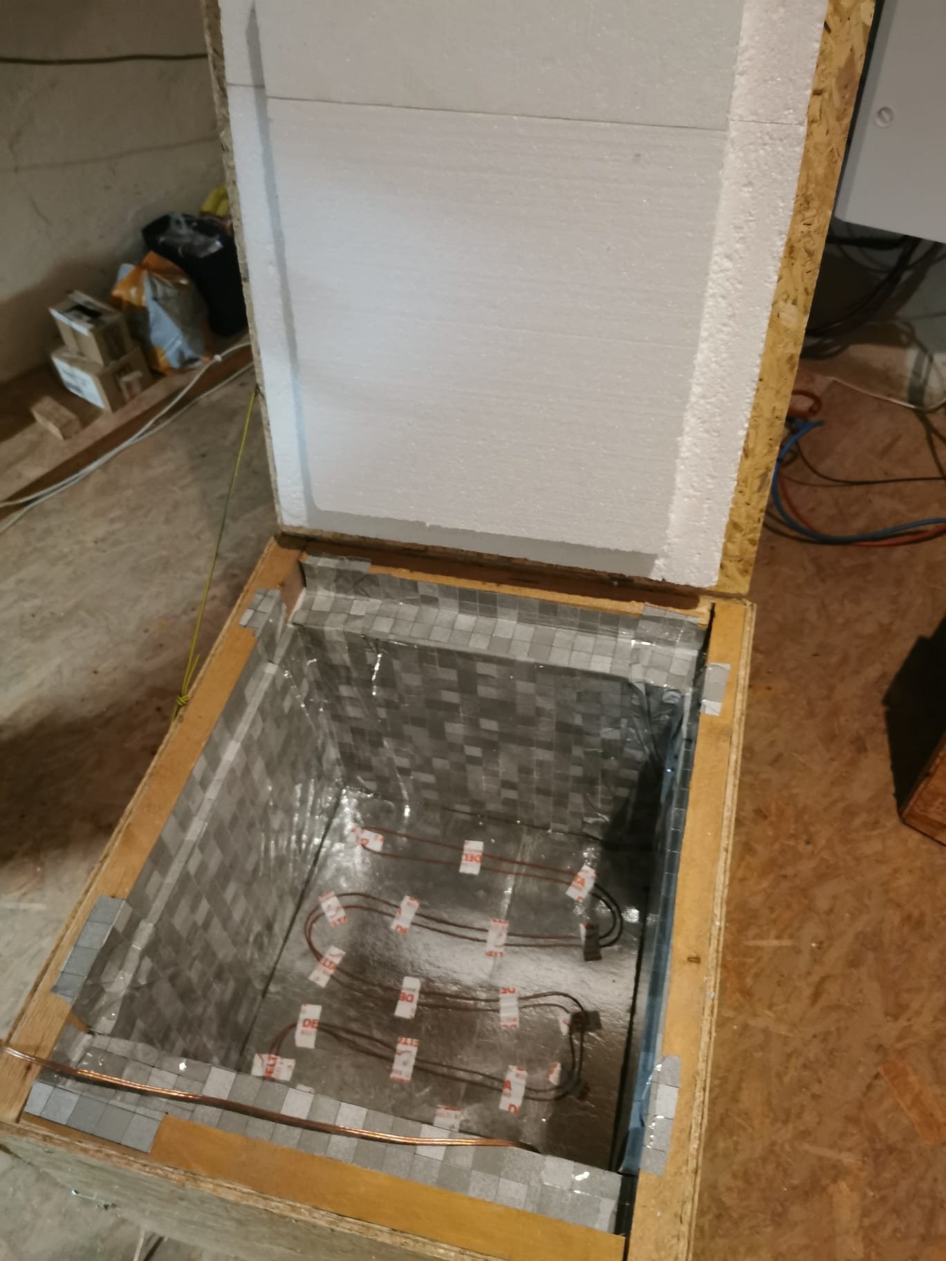 K izolační bedně samotné uvedu: - základní bedna je OSB deska a pár hranolů