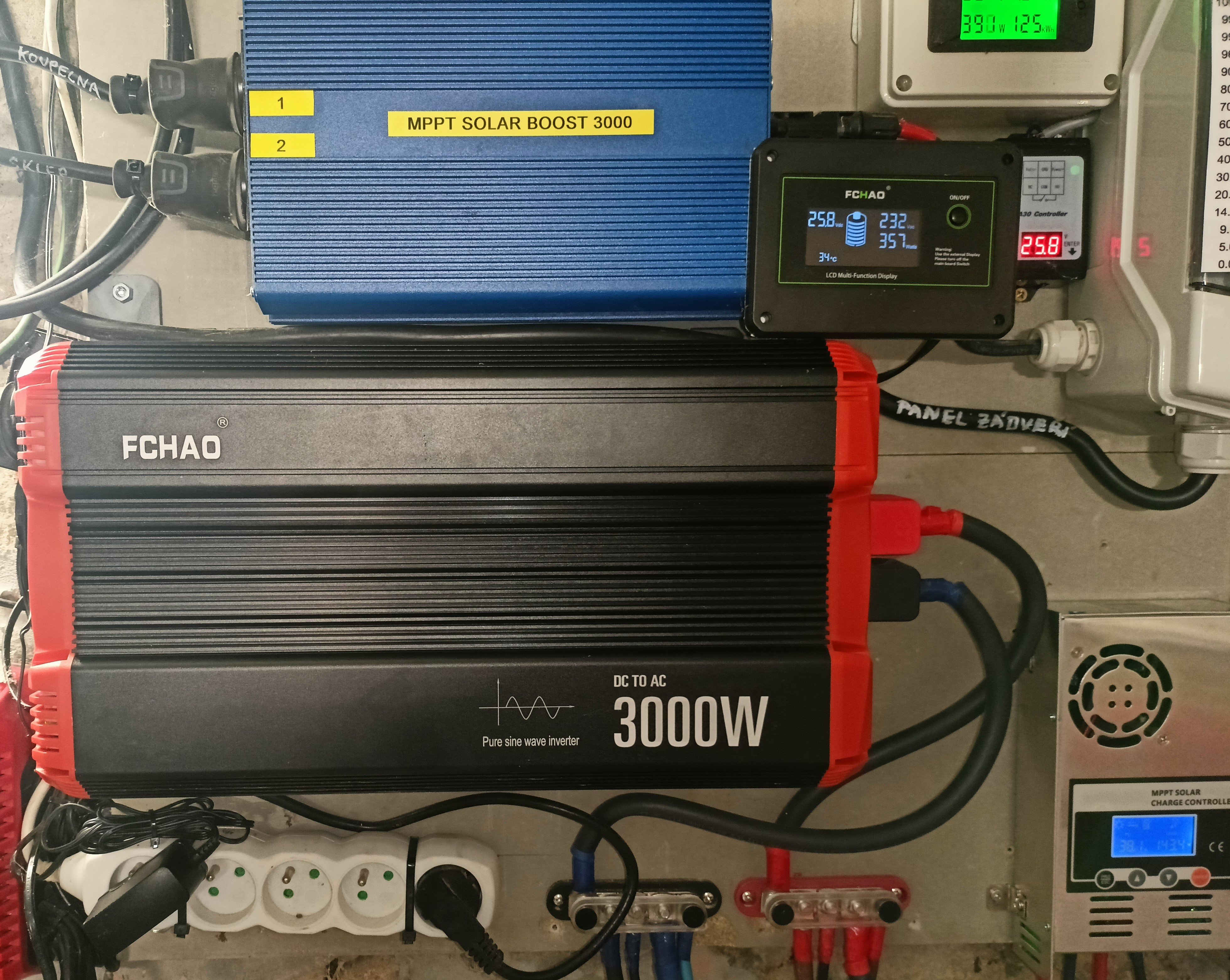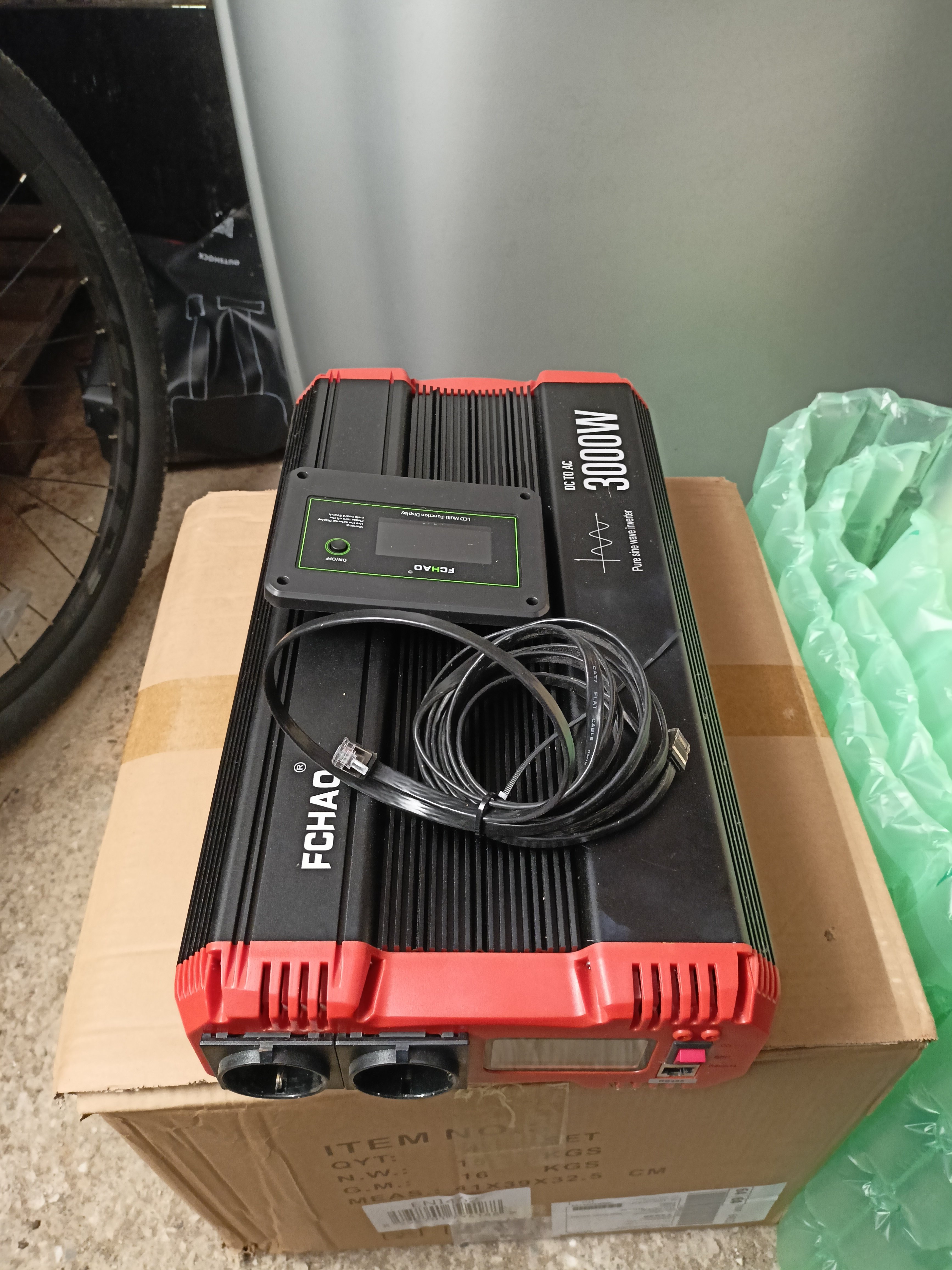 Nabízím k prodeji měnič napětí FCHAO s výkonem 3000W/6000W, vhodný pro 24VDC/230VAC systémy. Měnič je v provozu přibližně rok a je ve velmi dobrém stavu. Prodávám z důvodu změny systému, kdy jsem sloučil ohřev vody a domácí síť. Rozměry zařízení jsou 26,8 cm na šířku, 47,4 cm na délku a 10,5 cm na výšku. Cena je 3500 Kč.