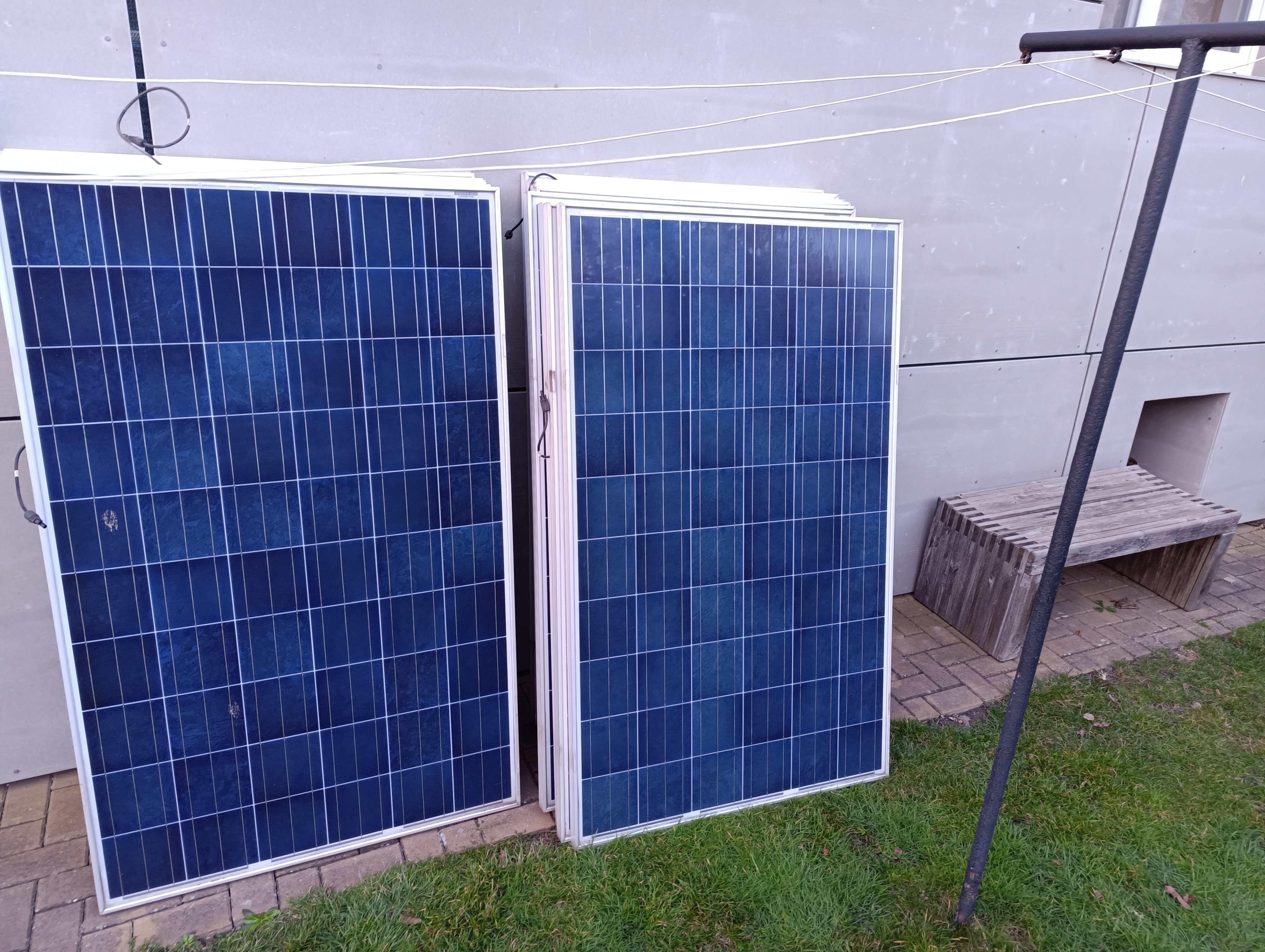 .V provozu na střeše od roku 2015 a jsou bez ztráty výkonu dodnes,doložím denní výpisy od roku 2015 z reglu. Těch 20ks dělalo 5.3kW což je přes 260W z panelu. Žádné vady,čisté sklo ,pravidelně myté.Dnes jsem je sundal. Nemám tušení co za ně,ale musí pryč, jinak si s nimi vzhledově zničím někde zahradu