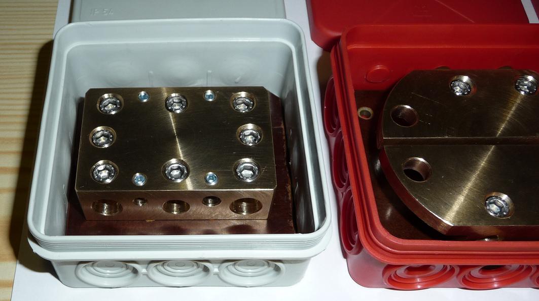 Sice skoro 400 za kus, ale zas je to bytelný a vydrží věky. Nedovedu si představit, jak bych to bez nich flikoval, obzvlášť s tlustodrátama od 35mm2 nahoru. Navíc přechodové odpory průchozí žádné a na odbočkách minimální. Jdou tam přišroubovat jako průchozí i kulatiny, nebo hliníkový profily (pro extrémisty