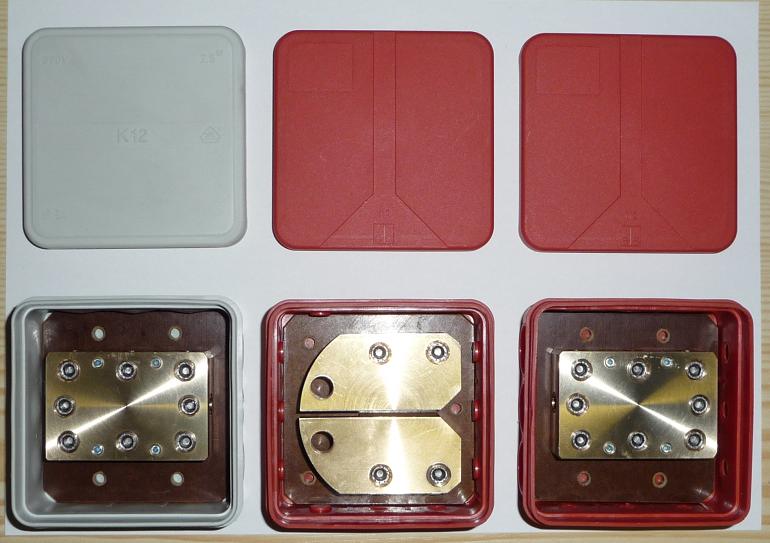 během dvou dnů s pomocí soustruhu a frézky jsem z kusu mosazné kulatiny vyrobil pěkvé svorkovnice přesně podle potřeb a na míru oněm krabičkám