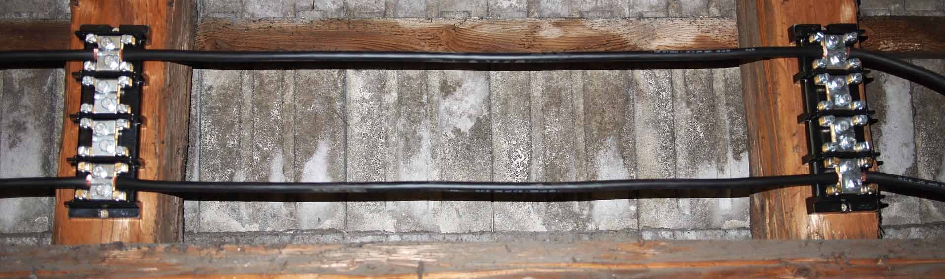 Pod střechou, kde to není moc vidět preferuju stoupačkové svorkovnice viz obr. Možnost až 4 pokračující kabely bez přerušení, klidně i 50mm2, v každém místě z každého kontaktu až 4 16mm2 odbočky (například na panely). Na uvedeném obrázku je to ještě nezapojené, je tam jen hlavní sběrnice dolů k Tristaru. Kabely jsou 35mm2. Bez přerušení, jen lokálně oholené. A krásně se s tím pracuje. Dělají i menší stoupačkovky pro šetřílky. Ale tyhle jsou ideální, nic lepšího jsem zatím neviděl. Mám s nimi tažené komplet panely i vývod od větrníku.